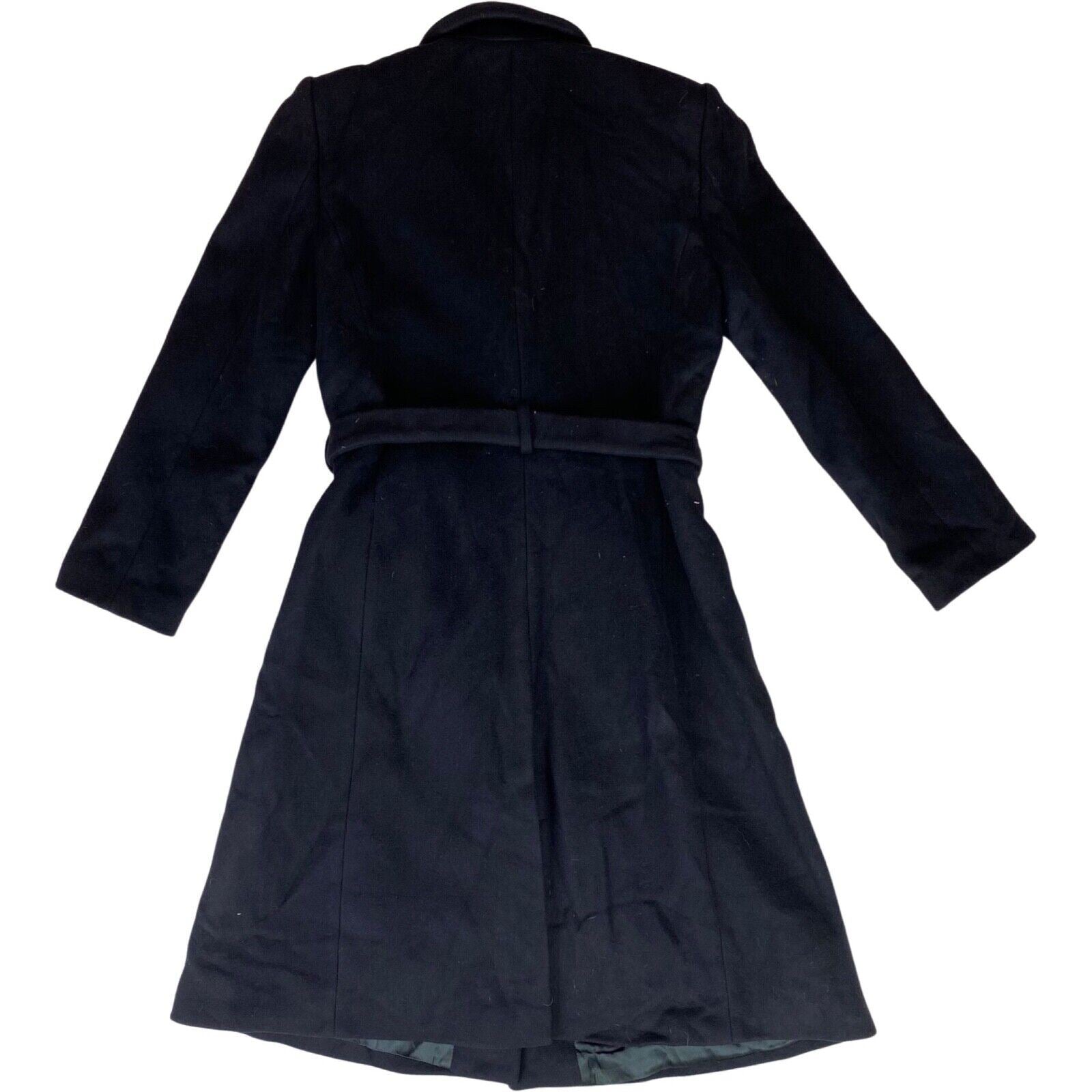 Vintage 00s Black Blue Felted Wool Belted Emporio Armani Princess Coat M 10 12