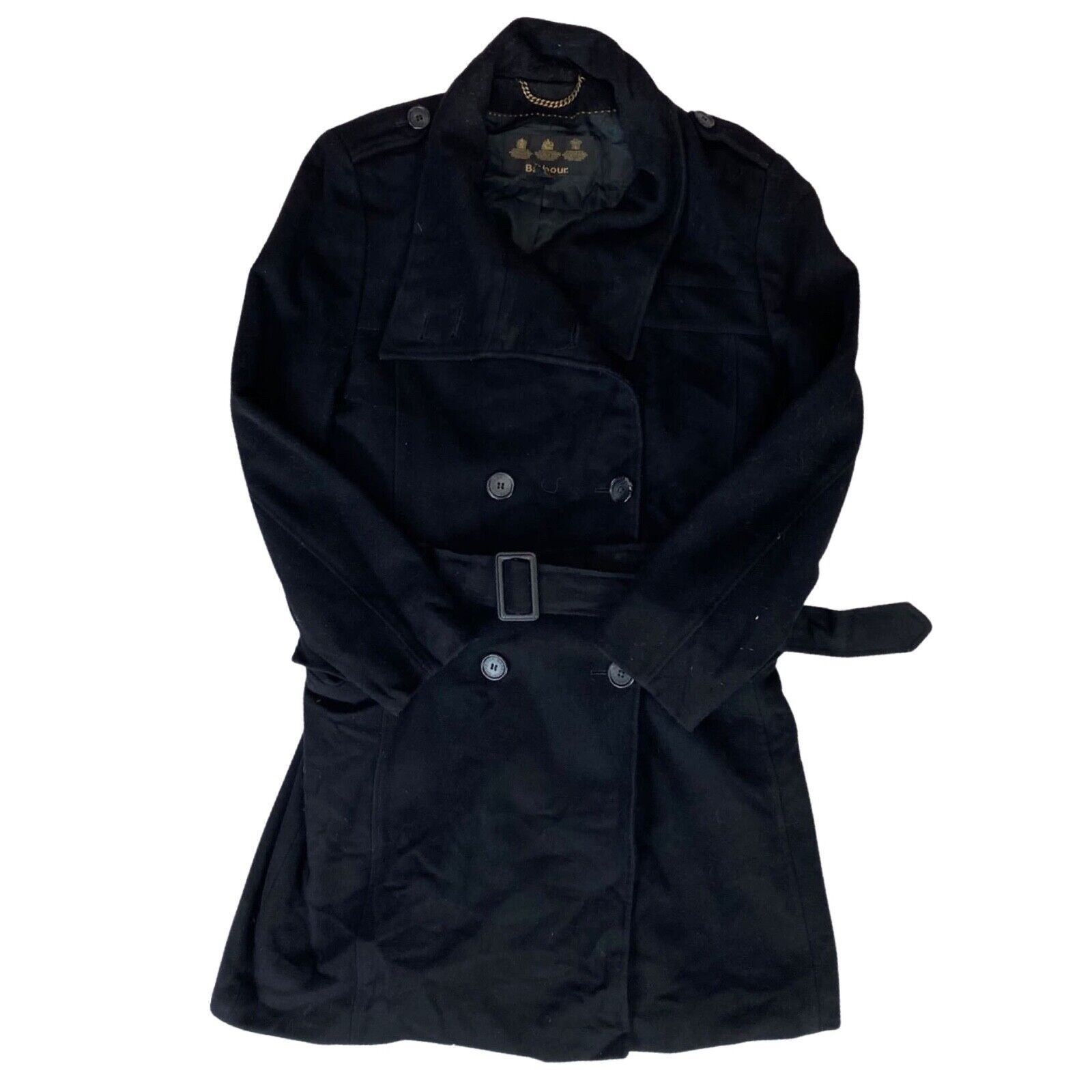 Vintage 00s Black Double-Breasted Belted Barbour Women's Swing Coat M 12