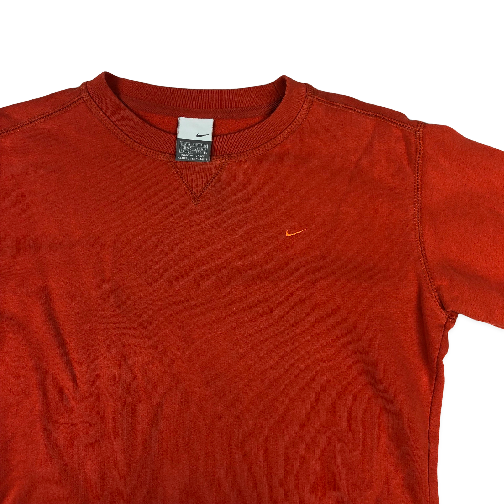 Vintage 00s Nike crew neck in orange with embroidered logo on chest.
