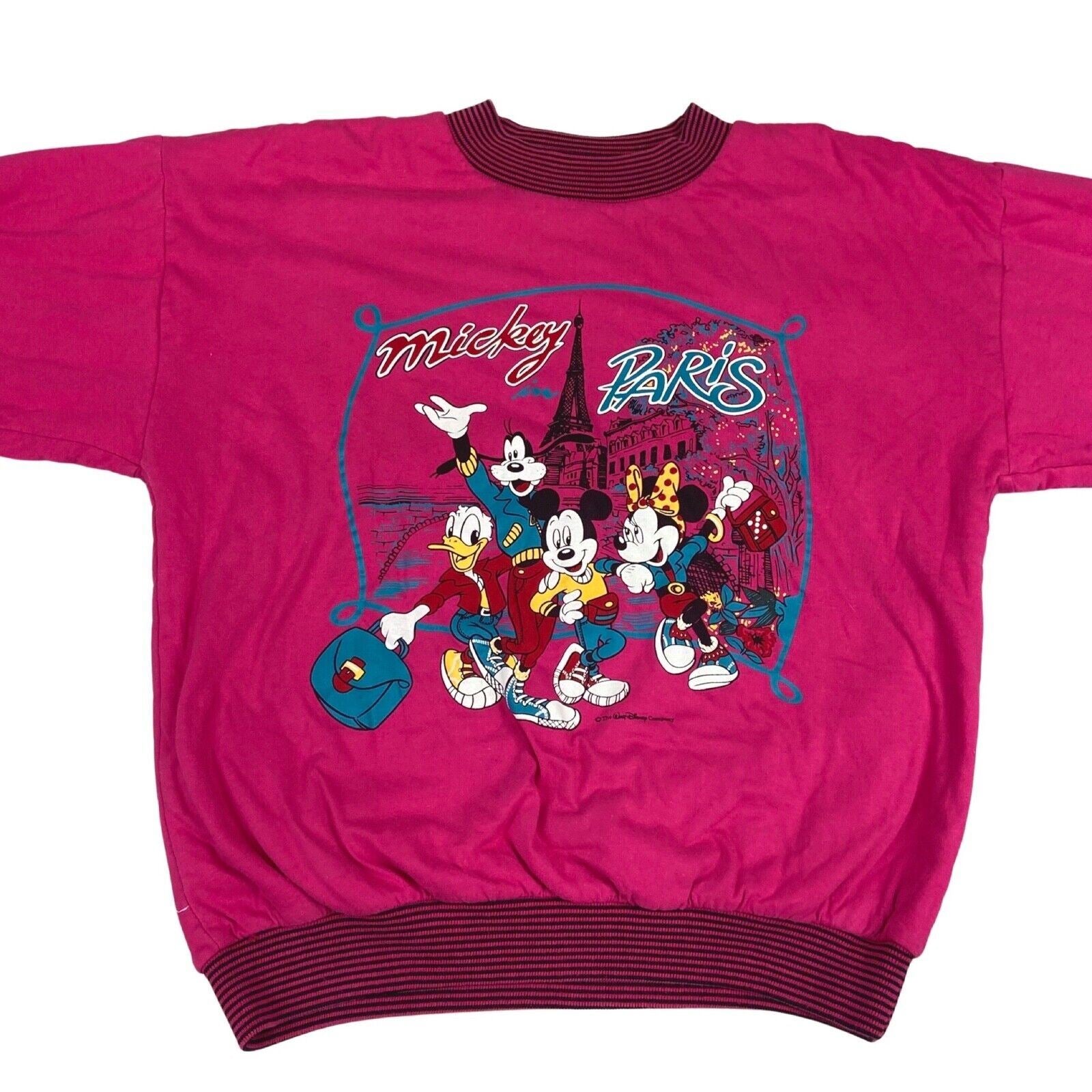 Vintage 00s Pink Disney Paris Mikey Mouse Graphic Reversible Sweatshirt L 14 16