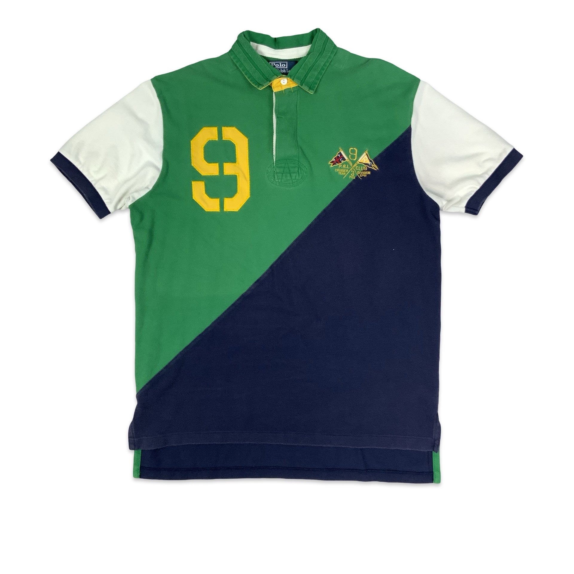 Vintage 00s Ralph Lauren Green Navy & Yellow "9" Polo Shirt L XL