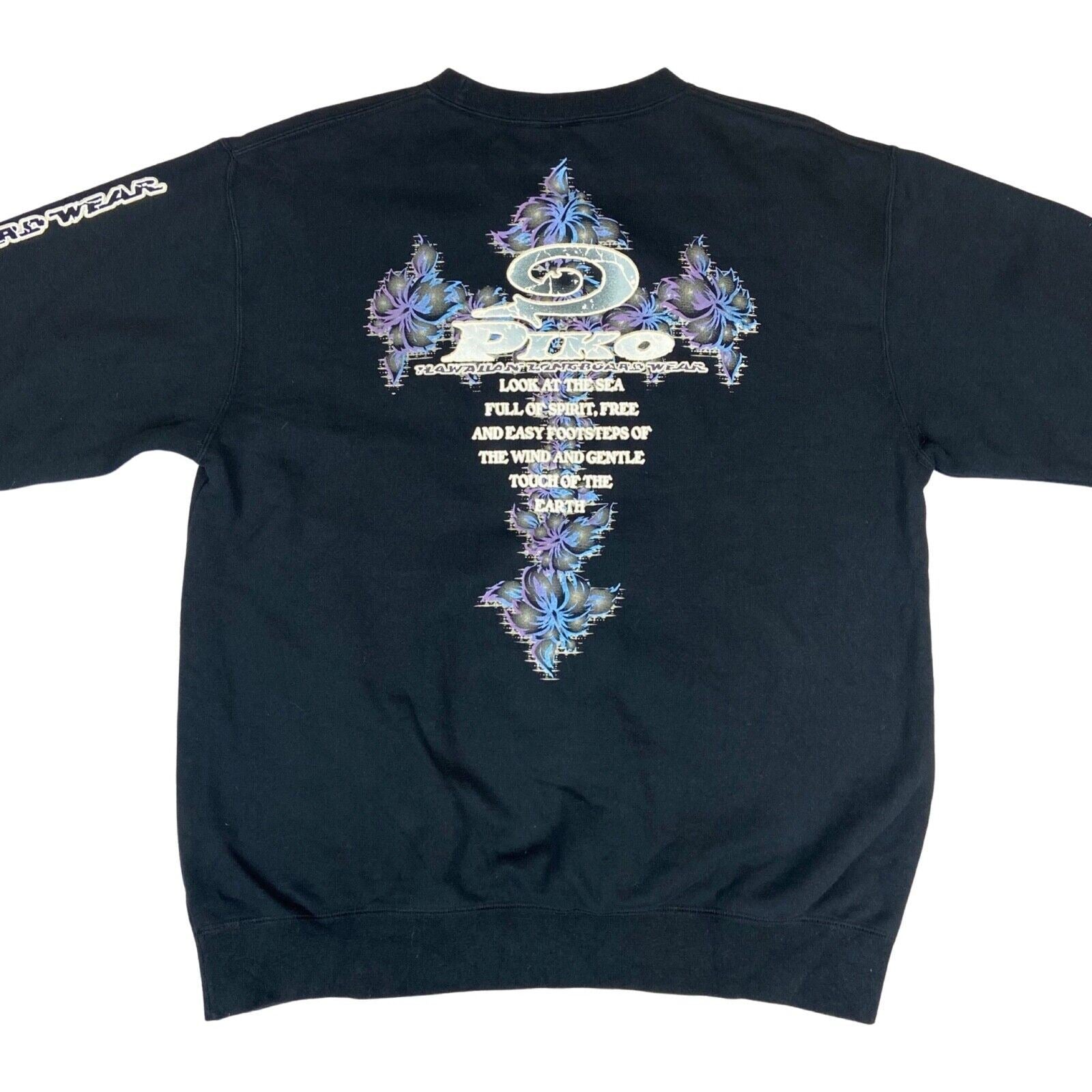 Vintage 00s Y2K Black Piko Hawaiian Printed Glittery Floral Graphic Jumper L