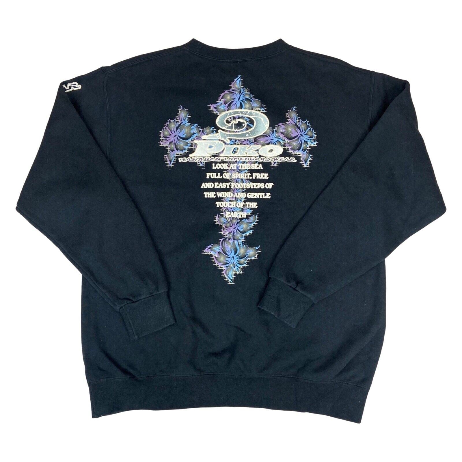 This a epic black Piko Hawaiian Longboard Wear printed jumper, made from a 70% cotton and 30% polyester blend. This has a fair amount of stretch in with a fleece inside.