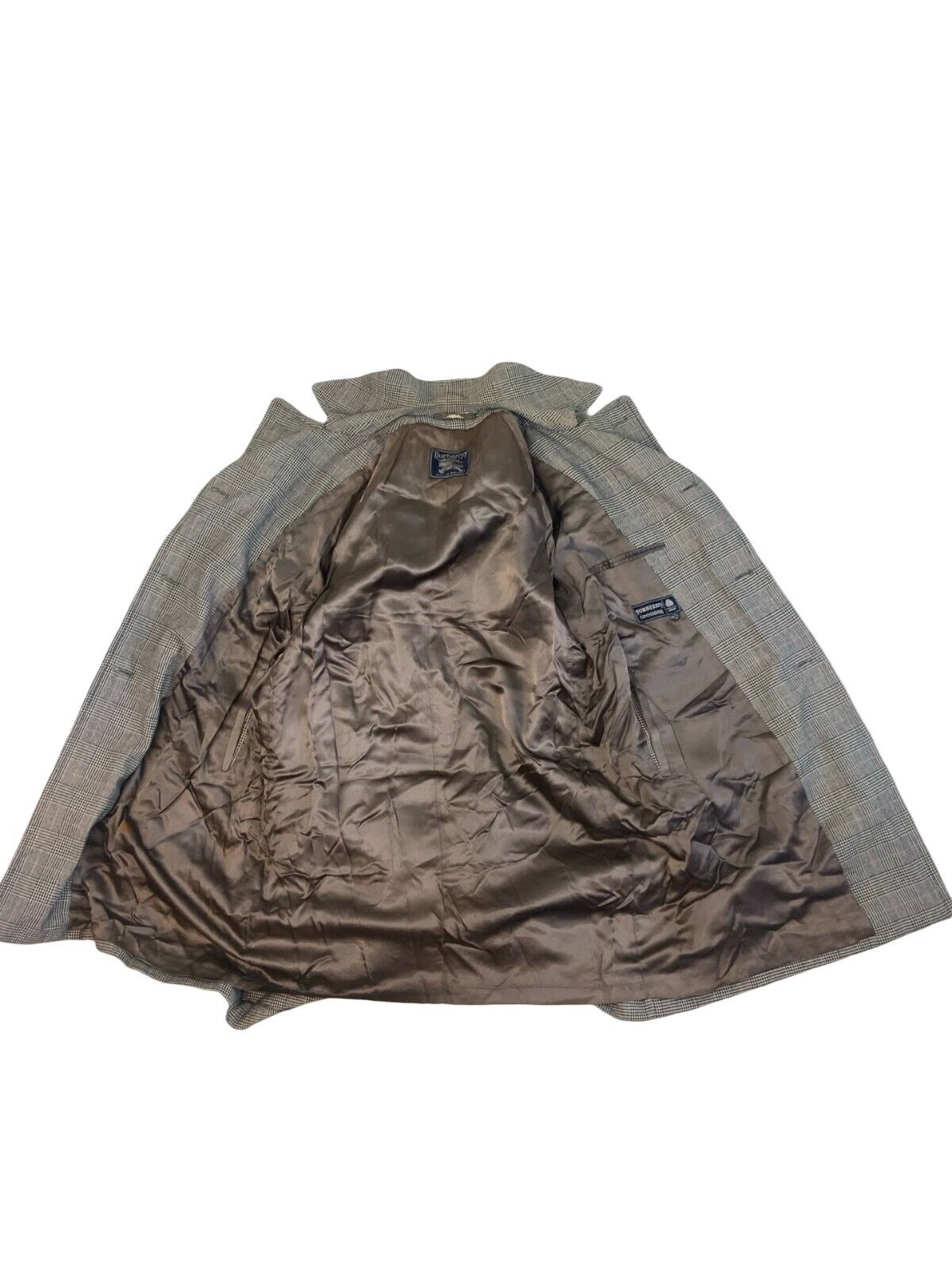 VINTAGE 1980s BURBERRYS CHECKED GREY BLACK RED TRENCH COAT SIZE L