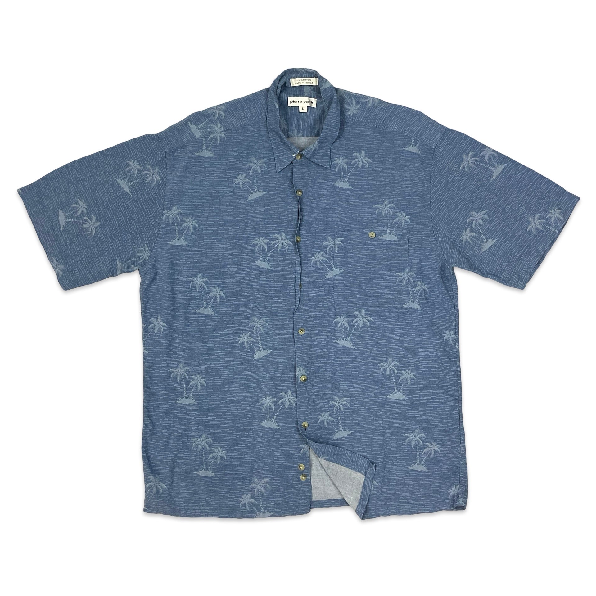 Vintage Pierre Cardin Blue Palm Tree Print Shirt M L