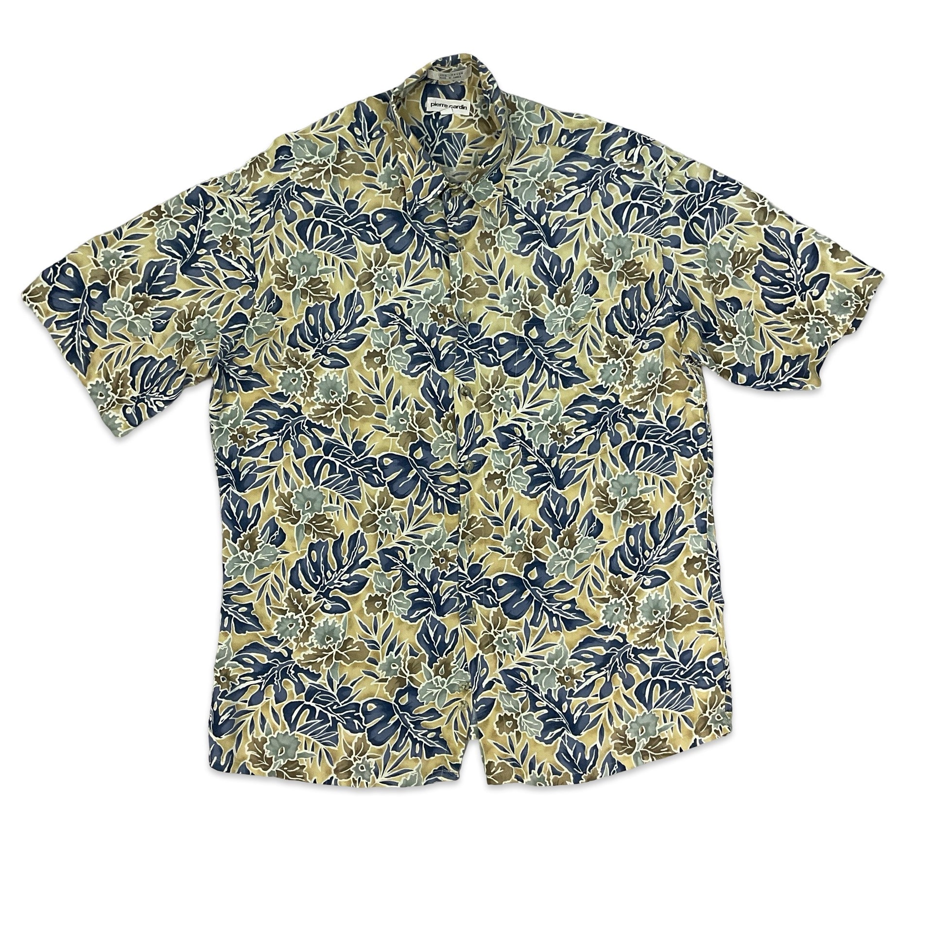 Vintage 1990s/00s Pierre Cardin Yellow & Navy Botanical Print Shirt M L