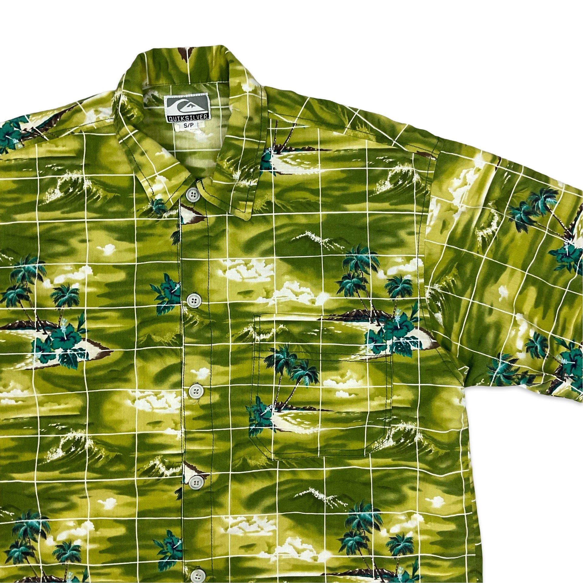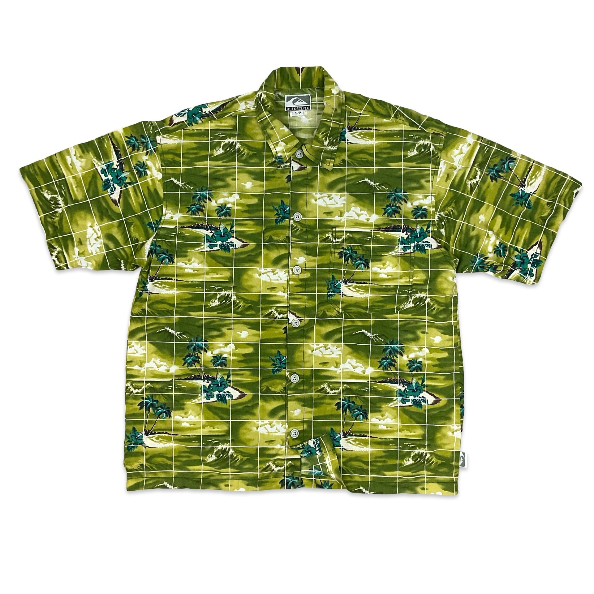 Vintage 1990s/00s QuikSilver Green Beach Print Shirt M L