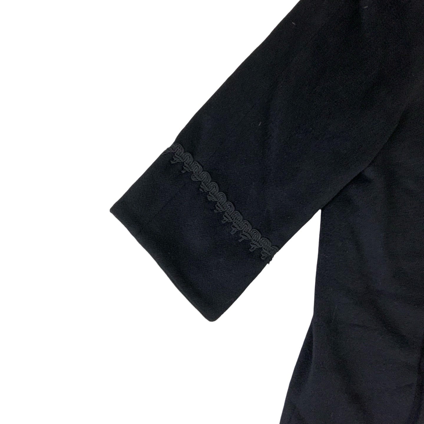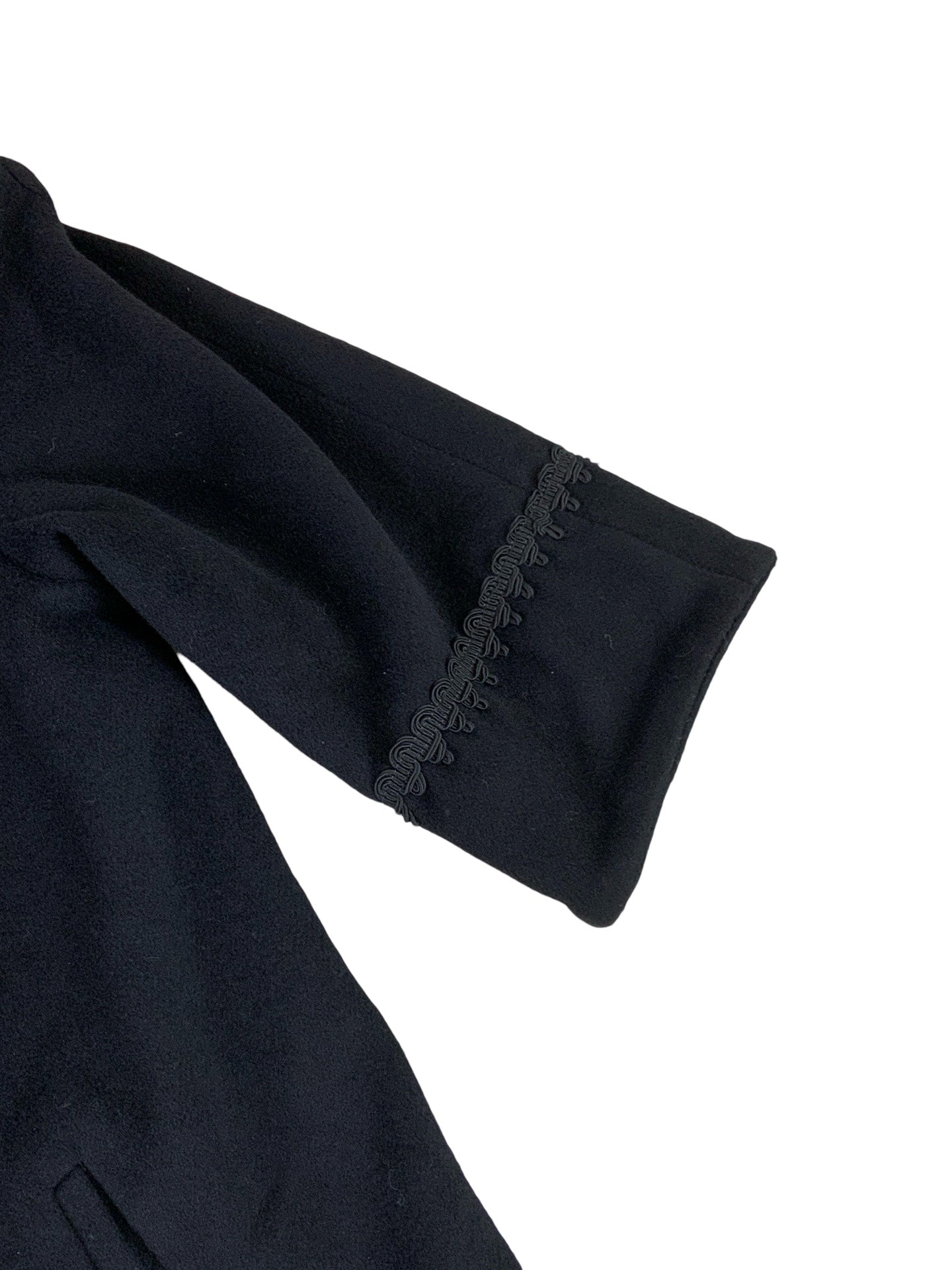 Vintage wool trench coat. 3/4 length sleeves with tassel details on sleeves and collar. front button up fastening. 100% wool.