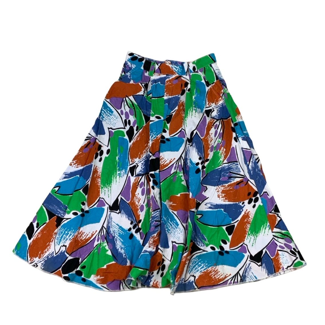 Vintage 60s 70s Abstract Green Purple Blue Midi Skirt XS 4 6