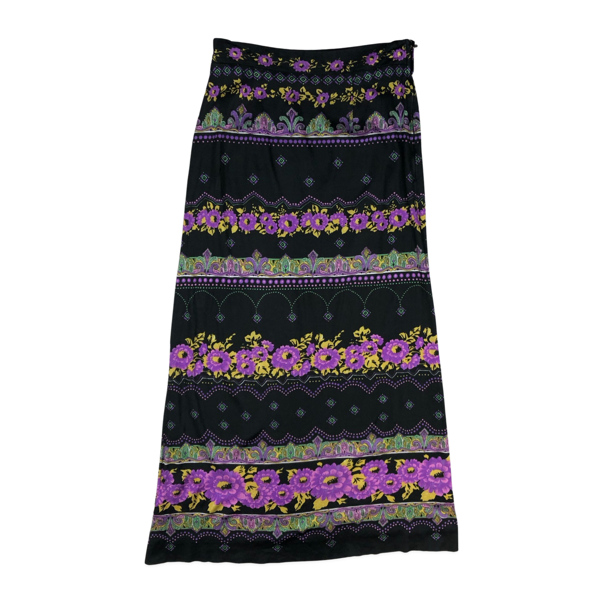 Vintage 60s 70s Black Floral Long Maxi Skirt 10