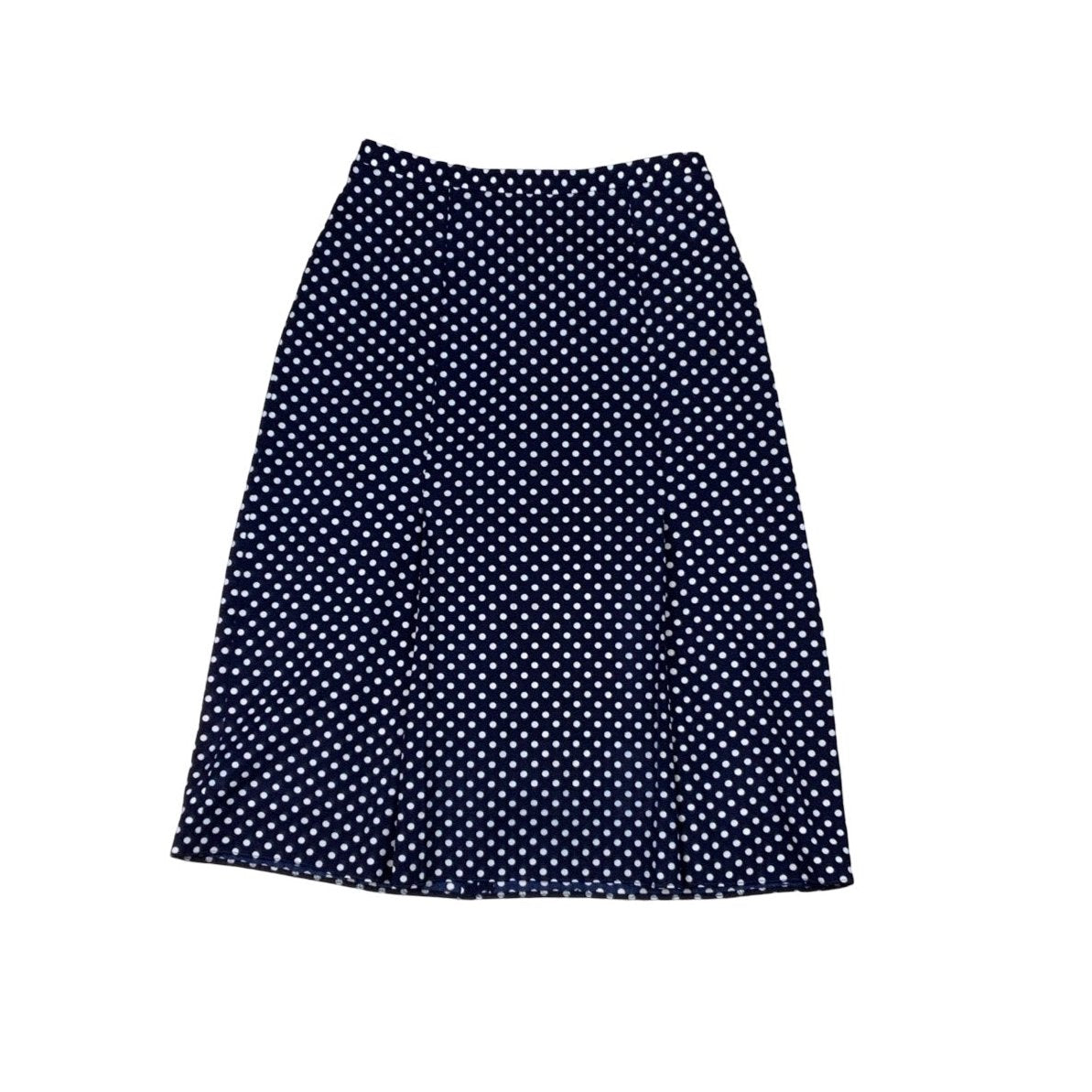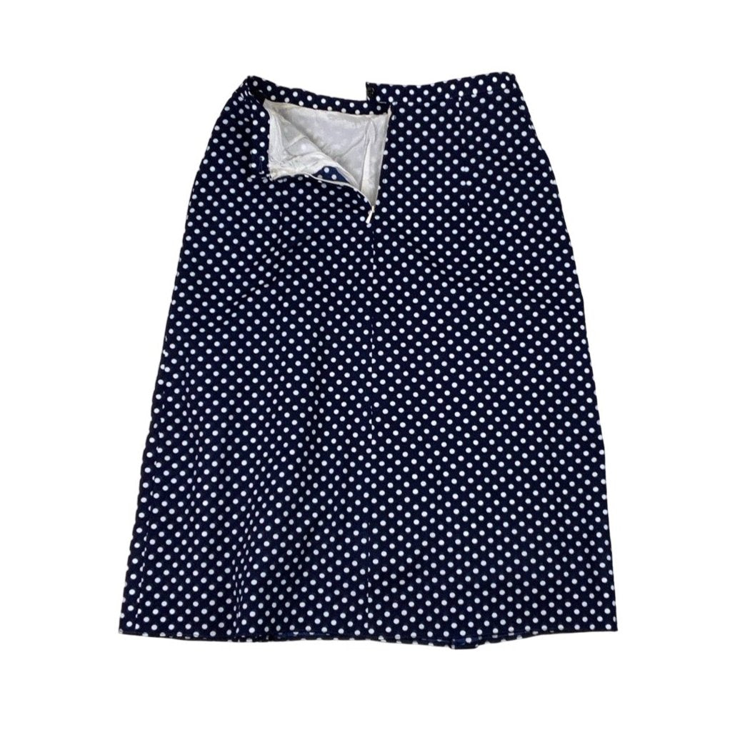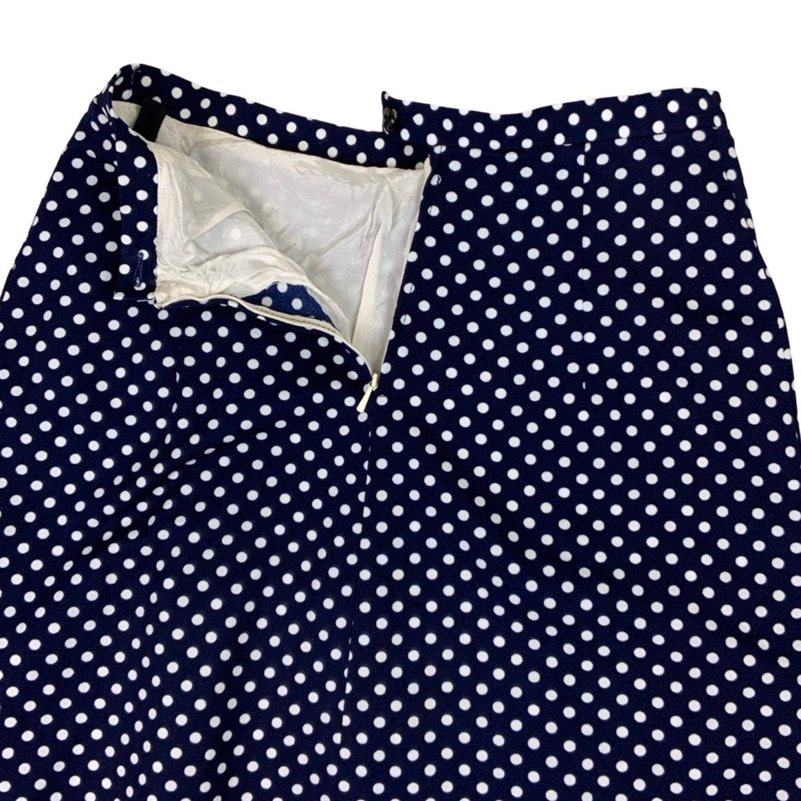 Vintage 60s 70s Navy Blue White Polka Dot Midi Skirt XS 4 6
