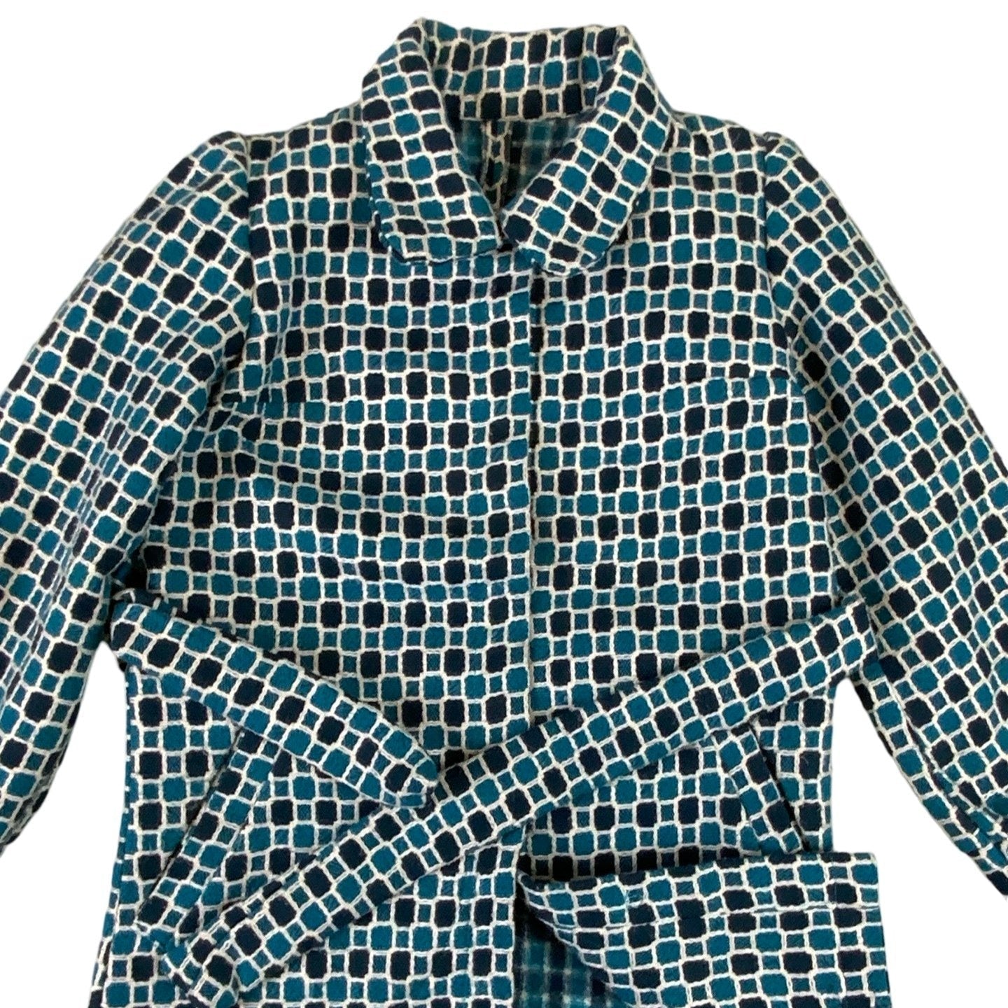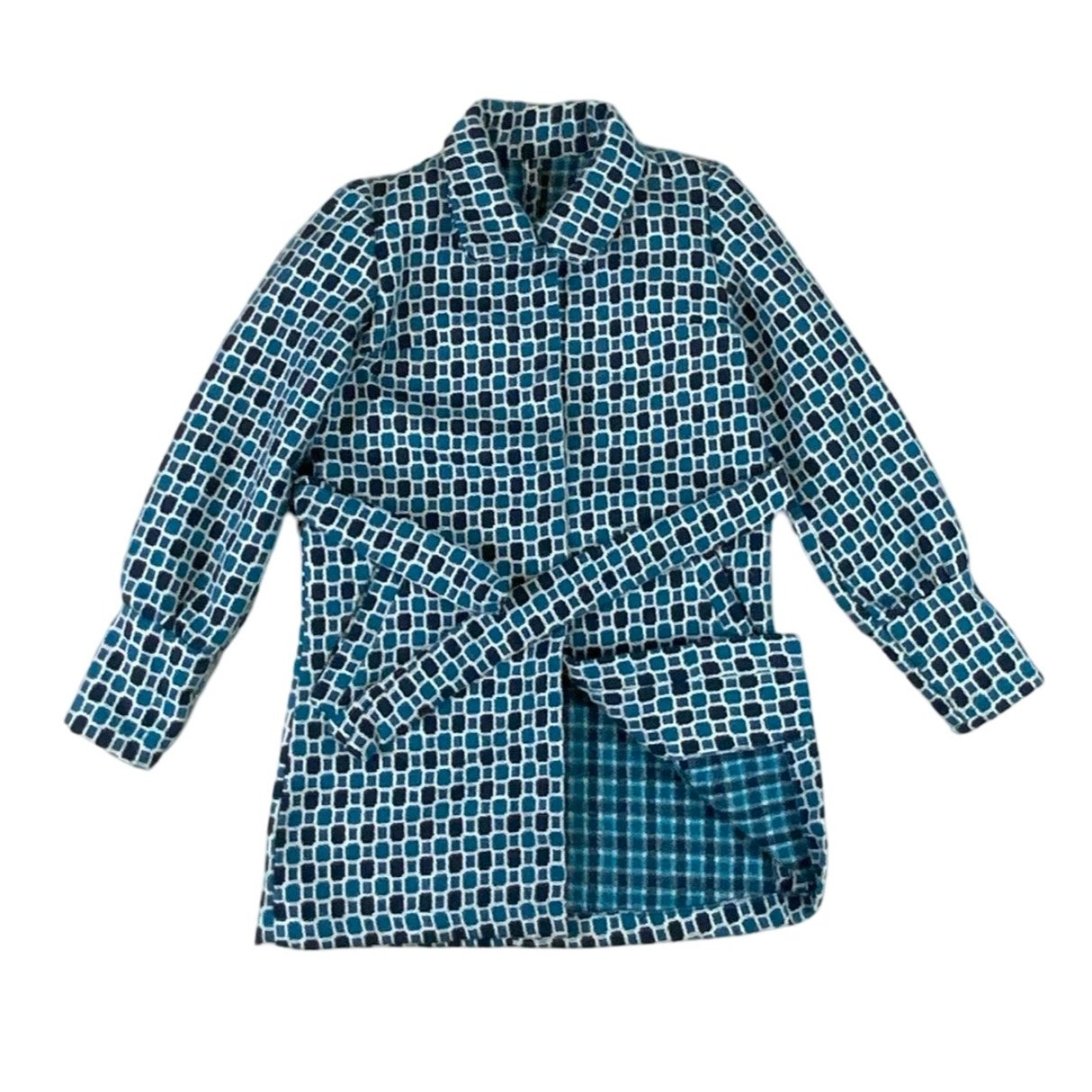 Vintage 60s 70s Wool Blue Pattern Coat 8 10