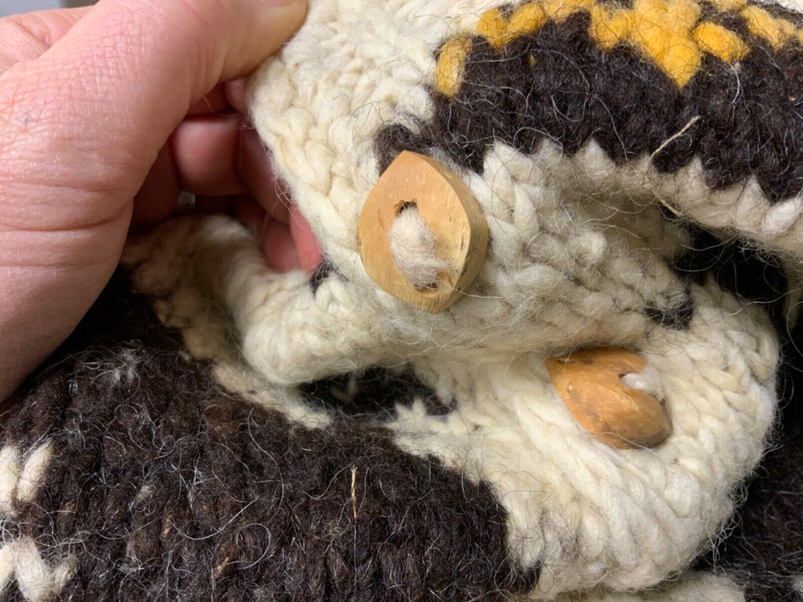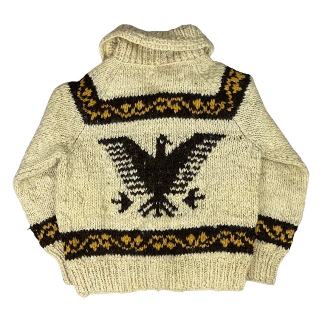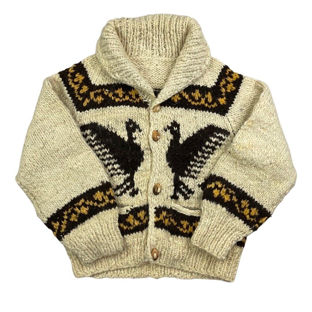 VINTAGE 60s LADIES CREAM WOOL COWICHAN GRAPHIC KNIT ROCKABILLY CARDIGAN 34” XS