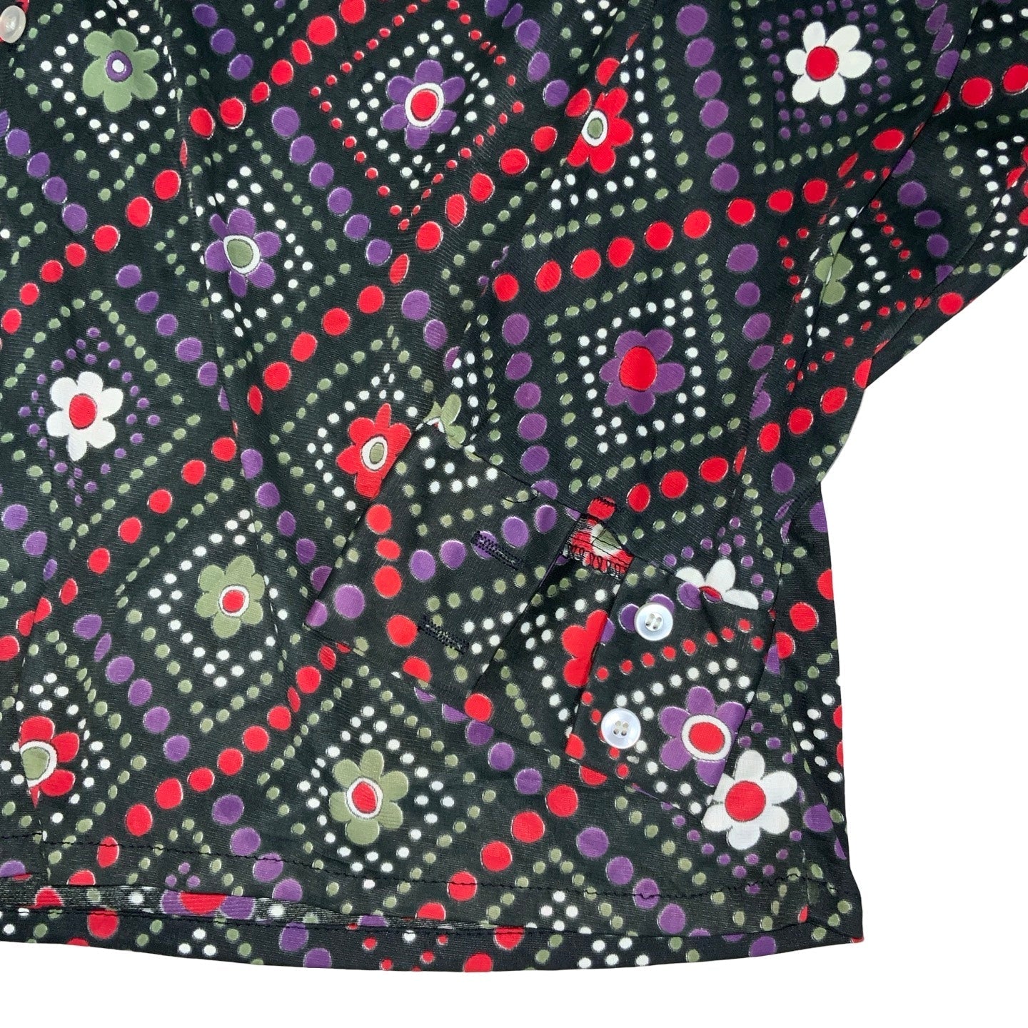 Vintage 70s 80s 'California Casualaire' Black Purple Red White Floral Dot Pattern Long Sleeve Blouse 18 20 L