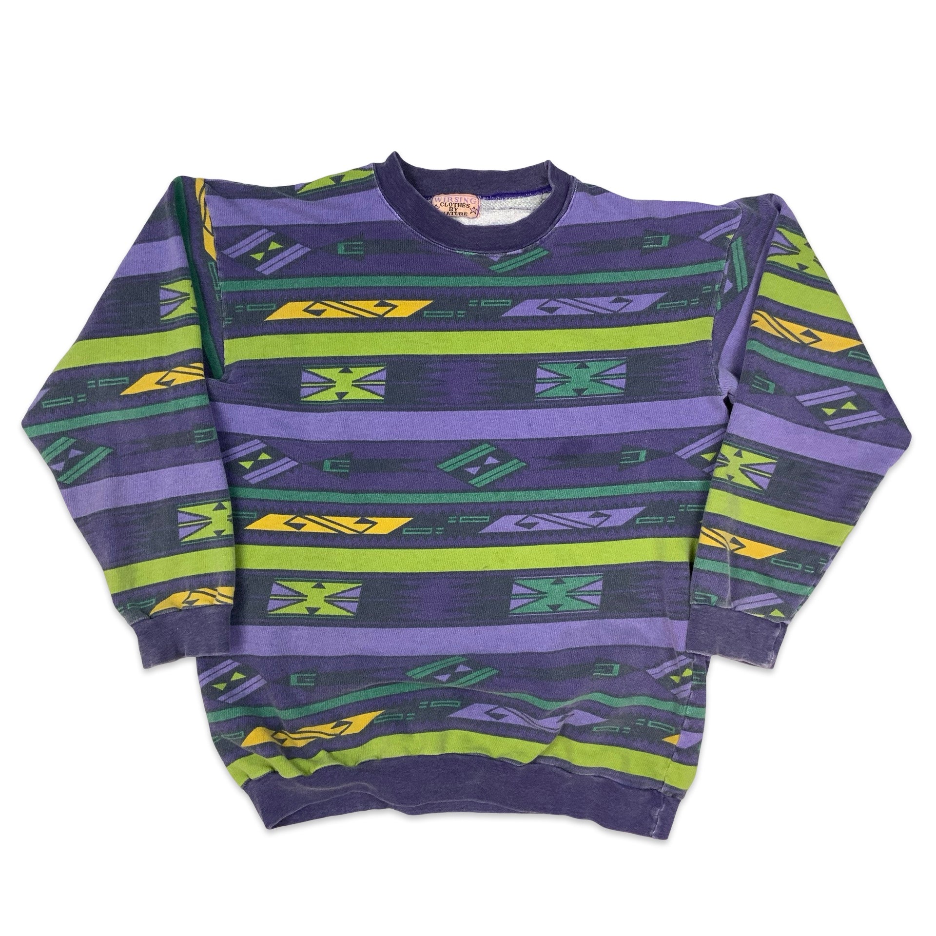 Vintage 70s 80s Purple & Green Aztec Print Sweatshirt L