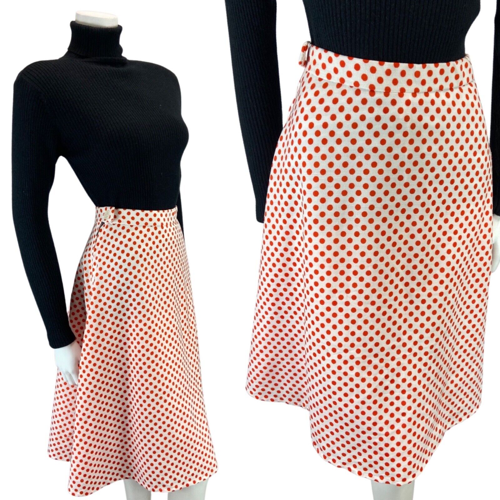 VINTAGE 70s 80S WHITE RED POLKA DOT SWING MIDI SKIRT 8 10 S
