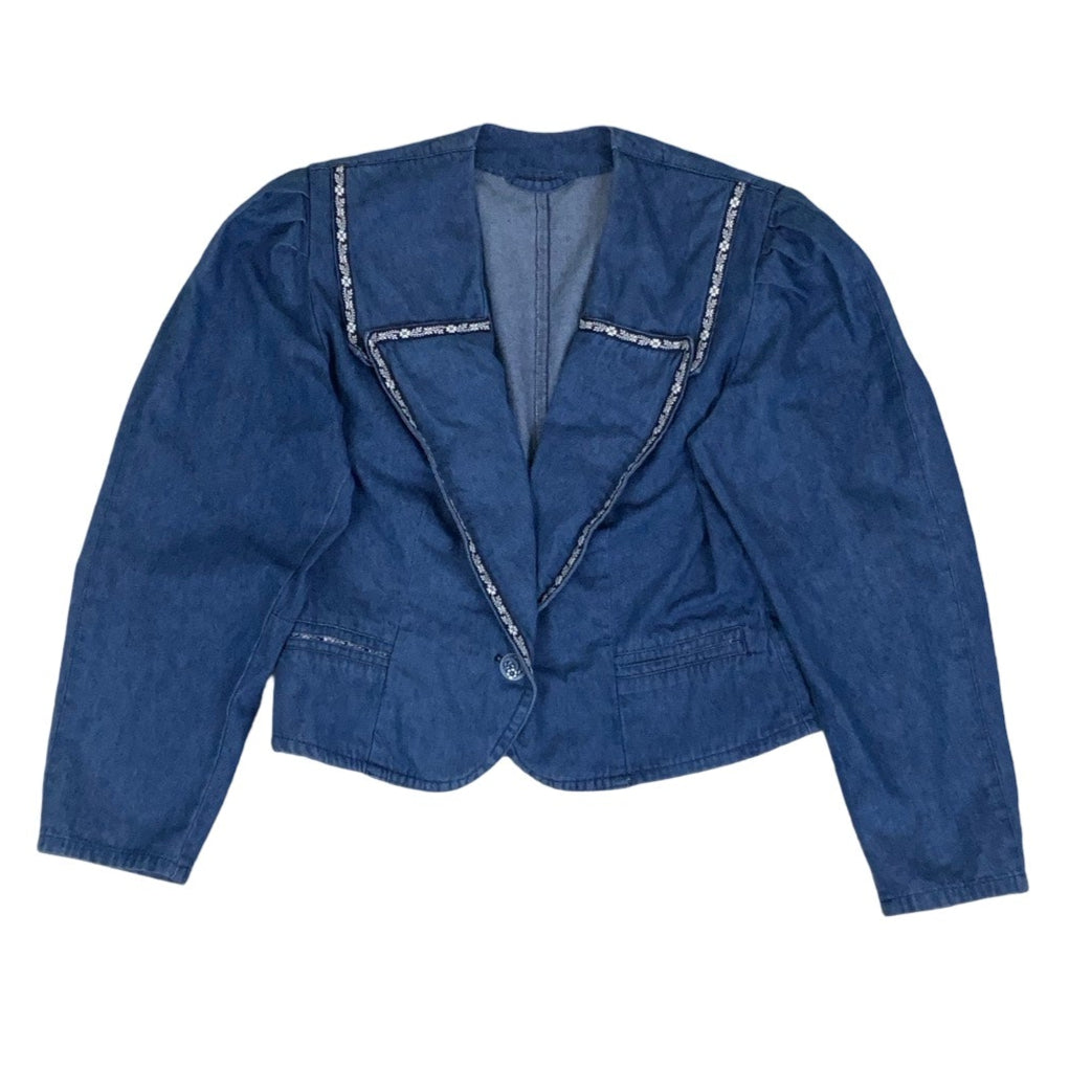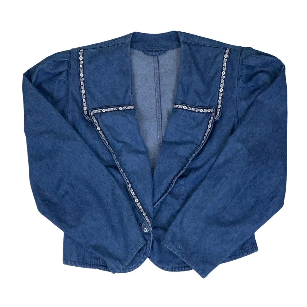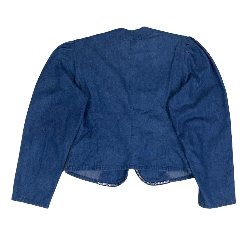 Vintage 70s 'Heller-Sport' Light Blue Floral Embroidered Crop Denim Jacket 12 14 S M