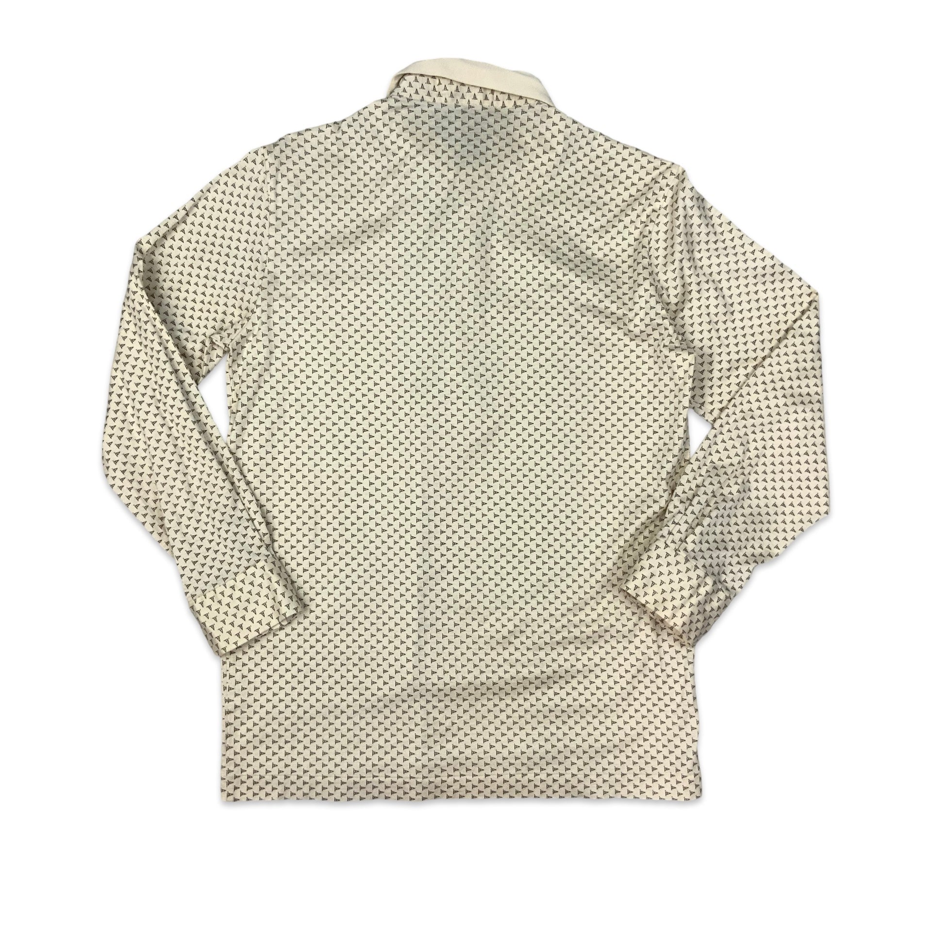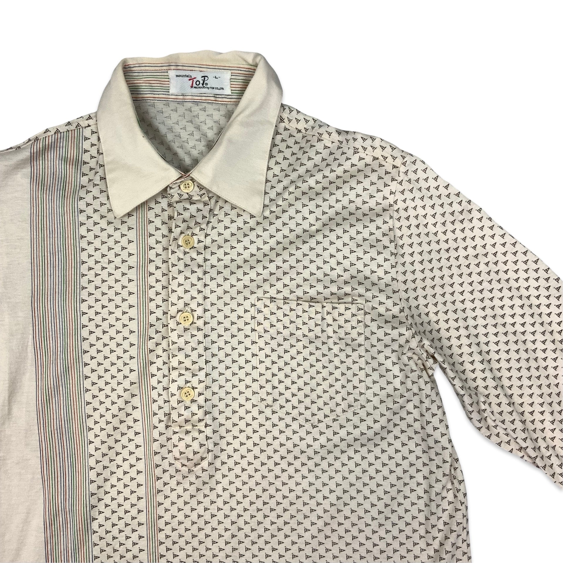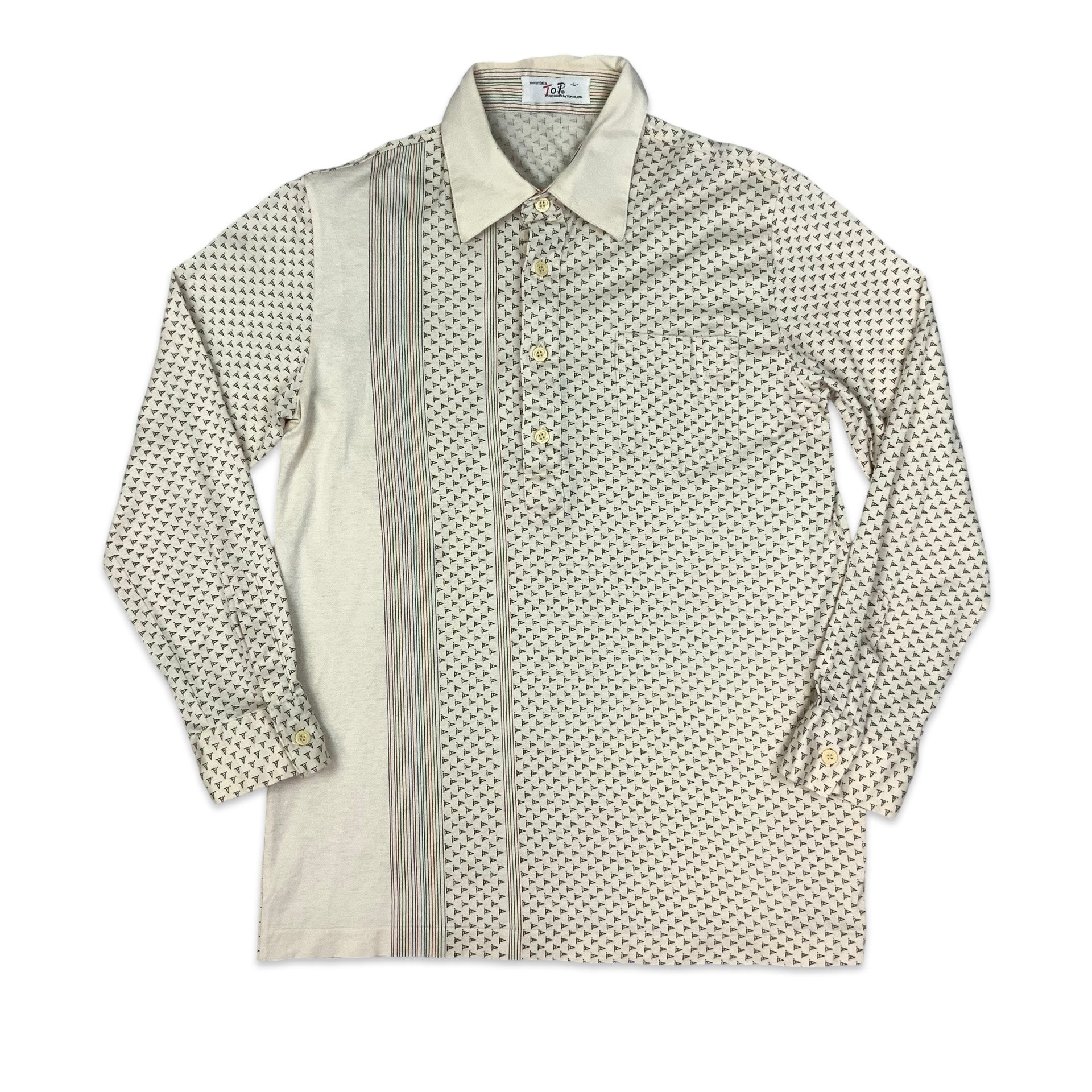 Vintage 70s men's pullover shirt in white with abstract geometric all-over mind.