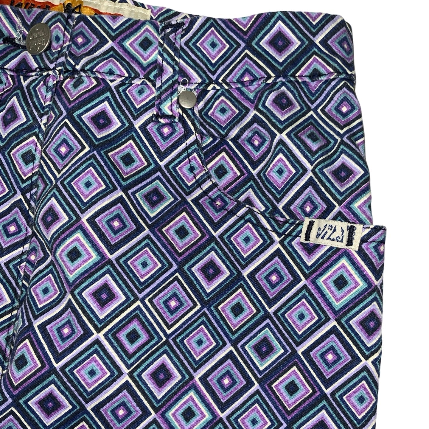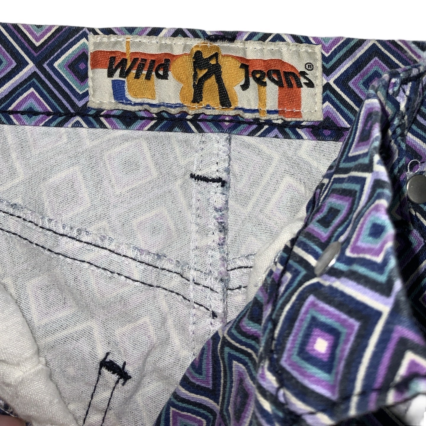 Vintage 70s ‘Wild Jeans’ Purple Blue White Geometric Psychedelic Straight Leg Jeans XS 4 6