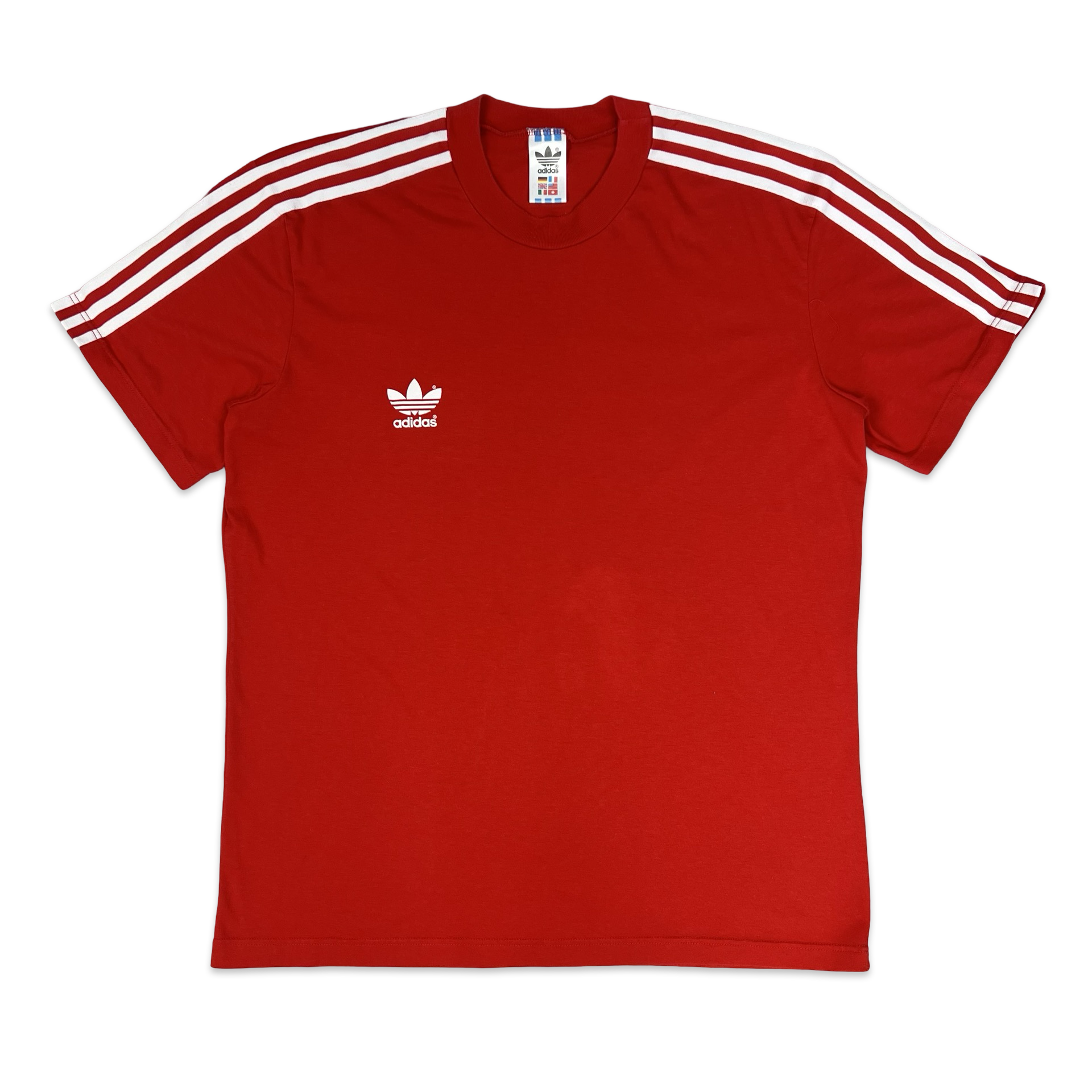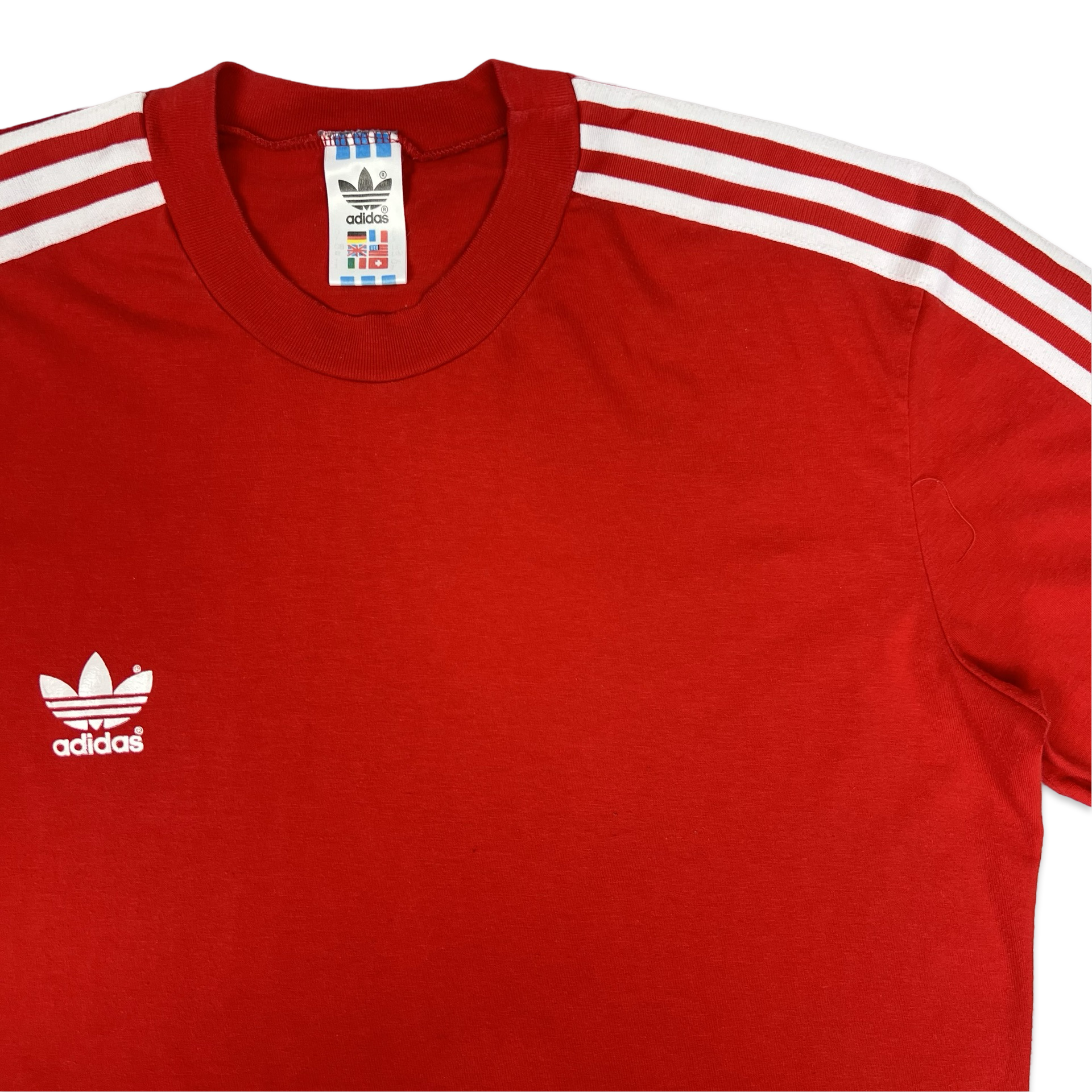 Vintage 80s 90s Adidas Red Three Stripe Tee M