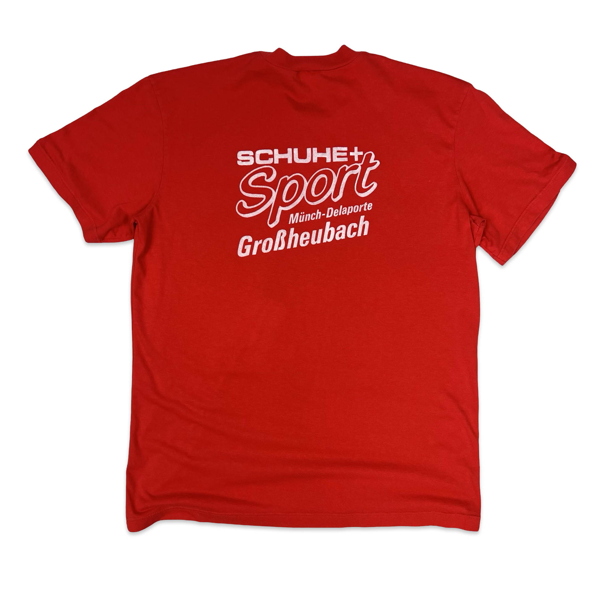 Vintage 1980s / 1990s red and white Adidas top with German sport print on back.