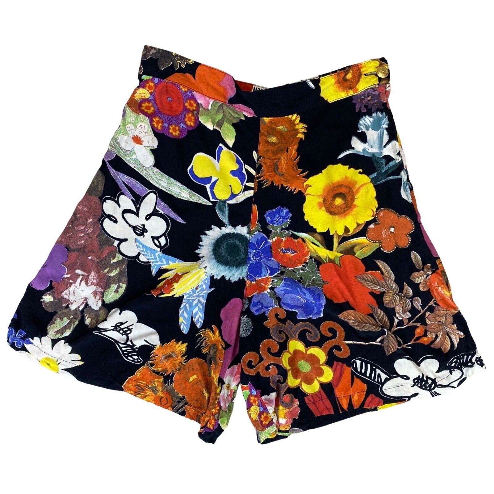 Vintage 80s 90s Black Moschino Jeans High Waisted Floral Shorts 8 10 S