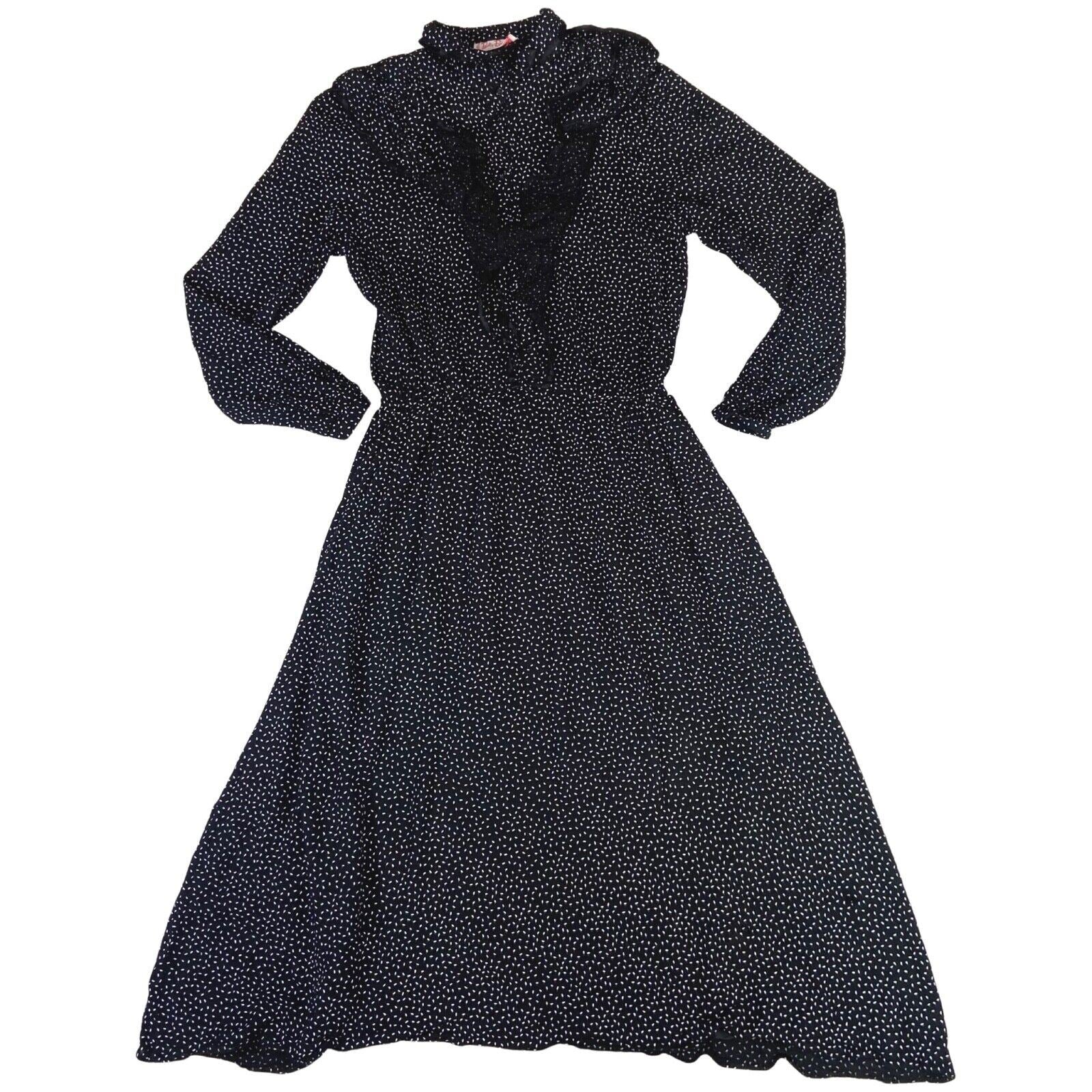 Vintage 80s 90s Black Polka Dot LongSleeve MidLength Betty Barclay Dress M 12/14