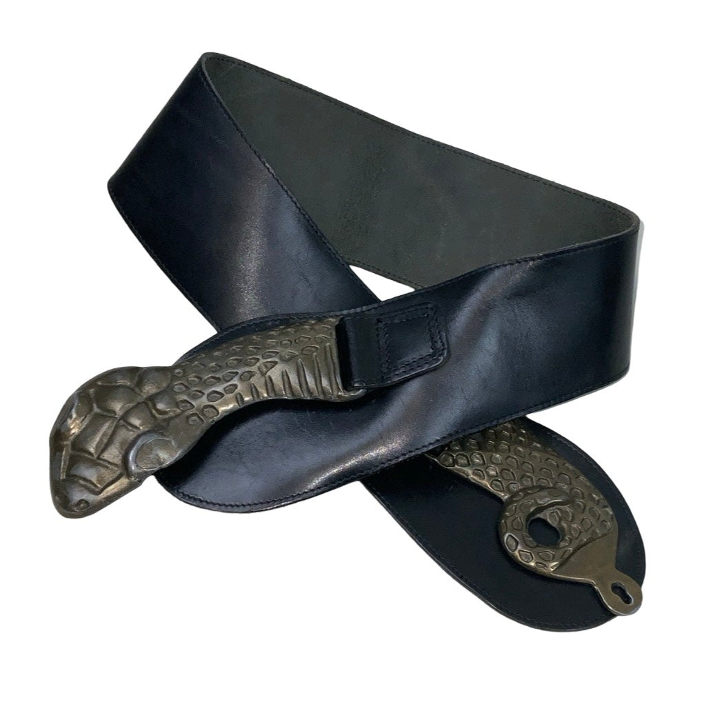 Vintage 80s 90s Black Thick Leather Statement Snake Clip Buckle Belt