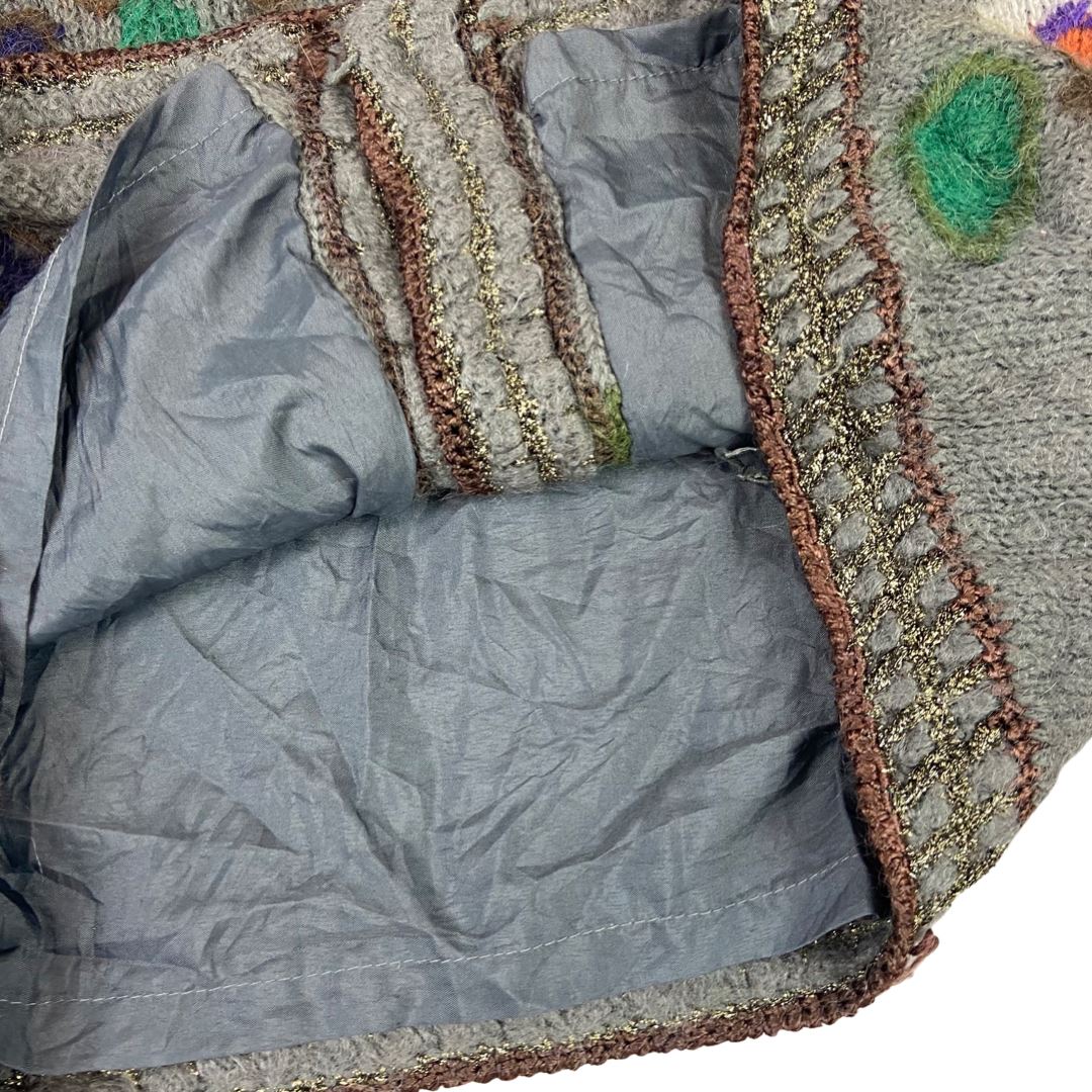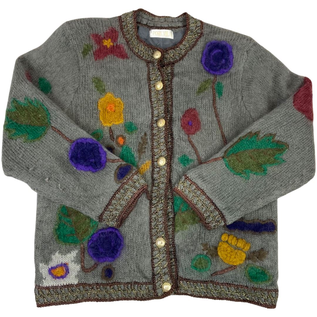 Vintage 80s 90s Grey Embellished Embroidered Floral Graphic Knitted Cardigan M