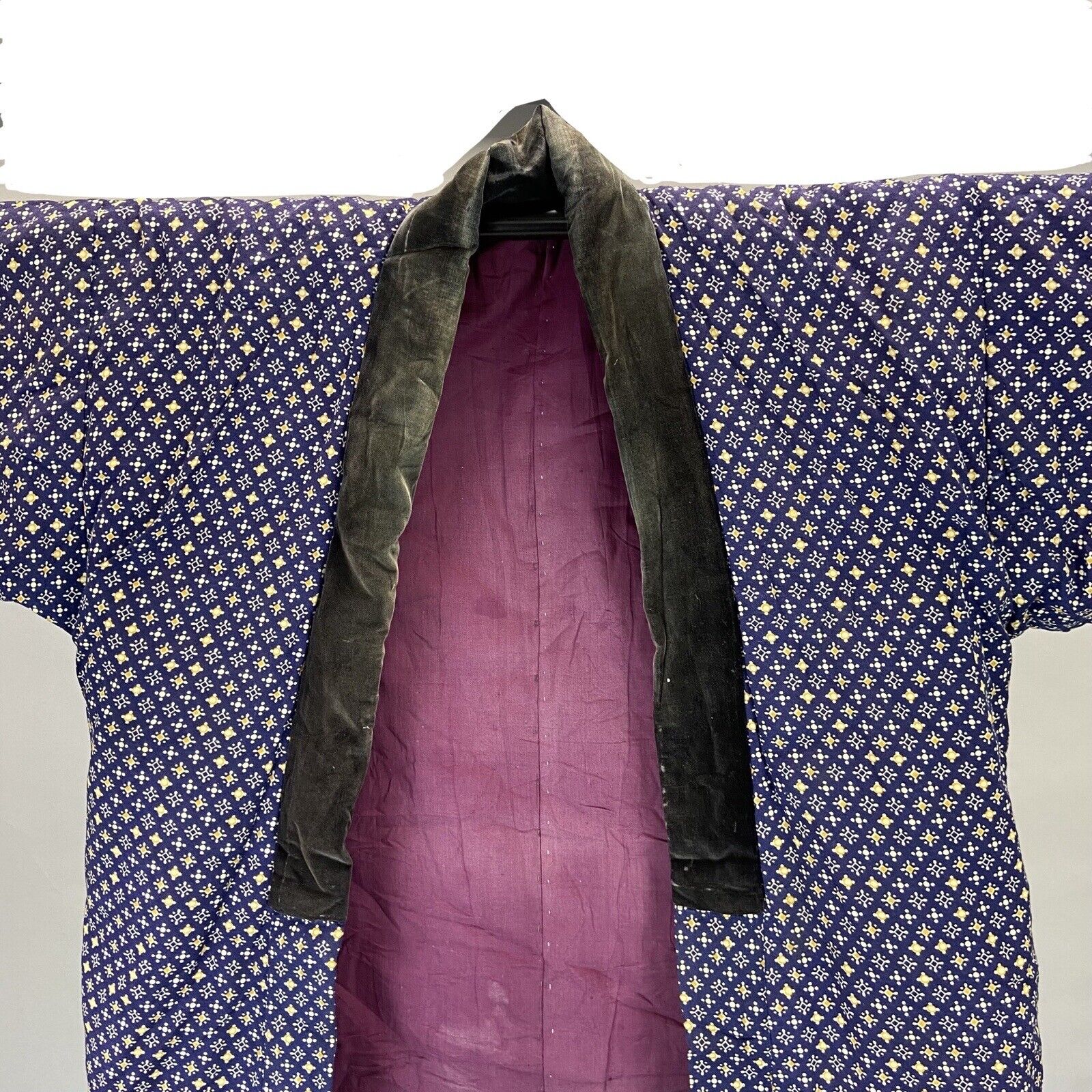 This is a gorgeous Showa Komon Kimono coat made from an indigo blue padded patterned cotton with minimal stretch and a purple lining. Features include; an all over geometric pattern in white and yellow and a faded grey velvet lining around the collar. BUT please check your measurements (in inches) against the ones provided below Chest (armpit to armpit): 23” Sleeve lengths (armpit to cuff): 12.5” Length from shoulder to hem: 31” PLEASE NOTE: the measurements listed may differ due to styles and fabrics. Each piece has been measured flat and any previous sizing labels have been ignored as different brands vary in sizing. Due to the nature of vintage clothing please be aware there may be some slight signs of wear and ageing. This can included; small holes, light piling or slight marks. Every item is hand picked by our team to ensure they are fully functional and wearable. We only select pieces that are good quality and avoid listing items with issues that cannot be seen without close inspection or in concealed areas. If an item does have any issues or damage this will be mentioned in the listing and pictured. However, mistakes can happen so if you think we’ve missed anything important please let us know. |