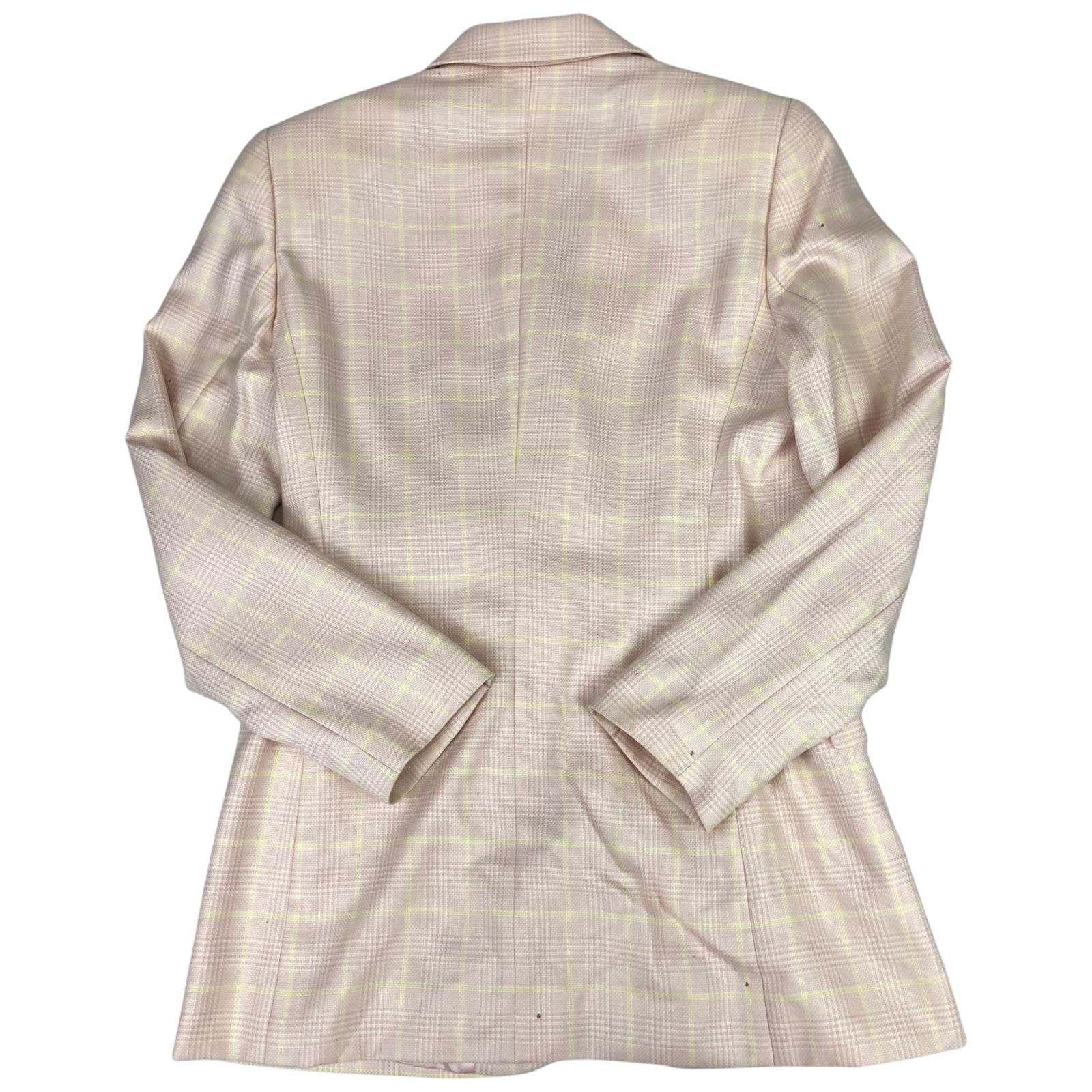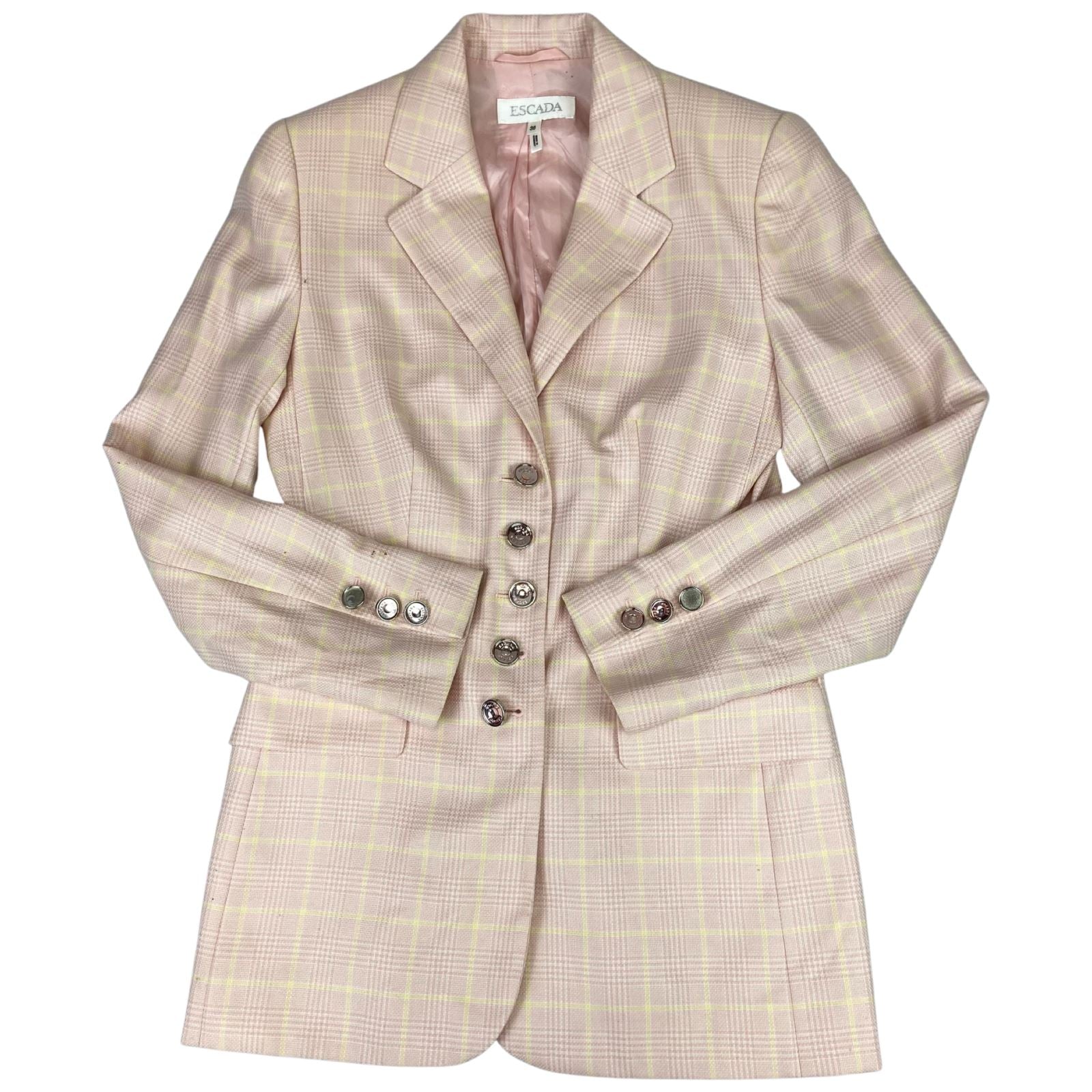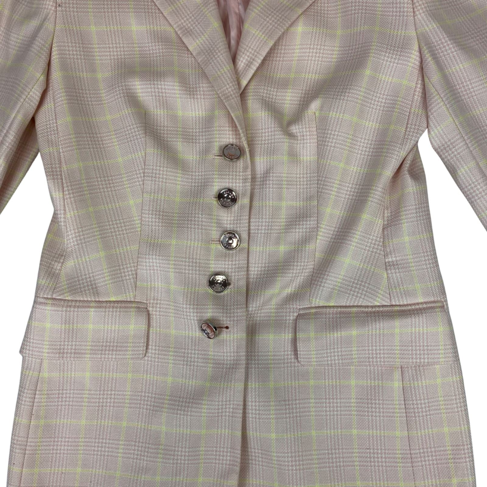 Vintage 80s 90s Pink Escada Plaid Chequered Button Up Cashmere Blazer M 12/14