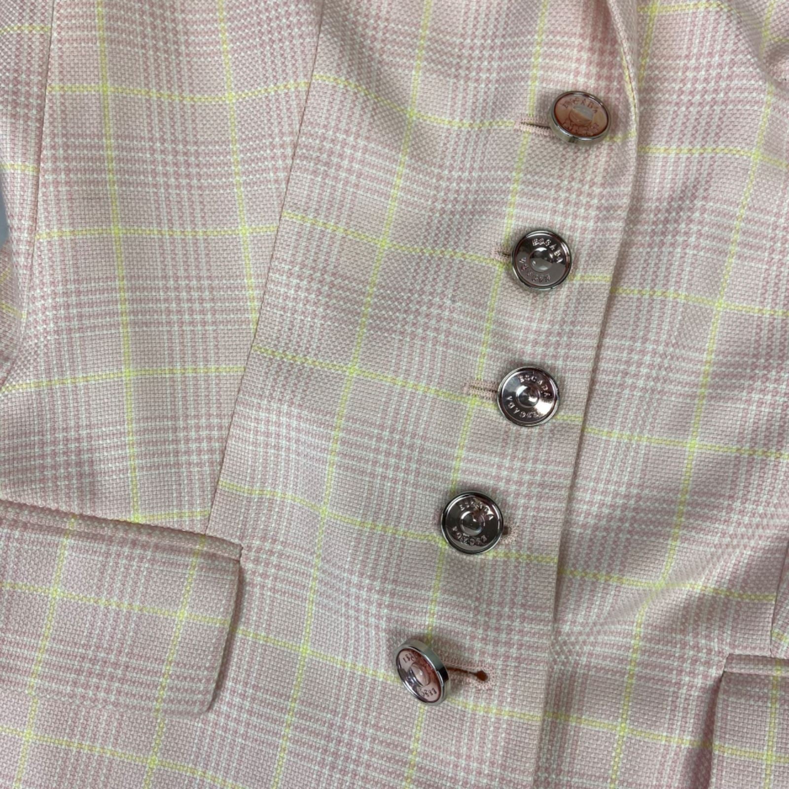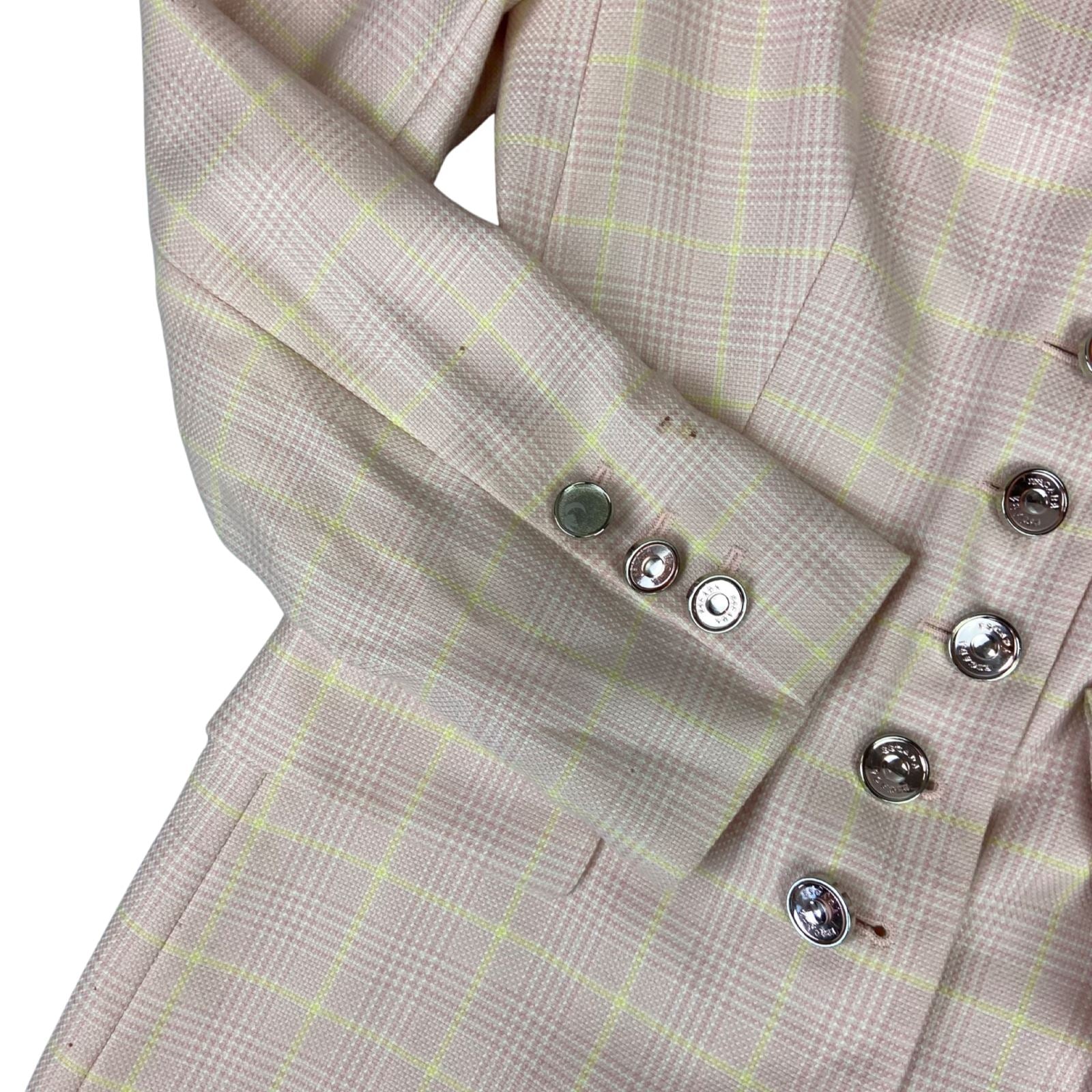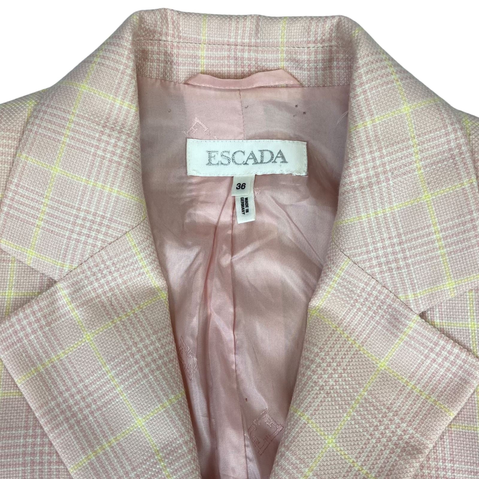 Vintage 80s 90s Pink Escada Plaid Chequered Button Up Cashmere Blazer M 12/14