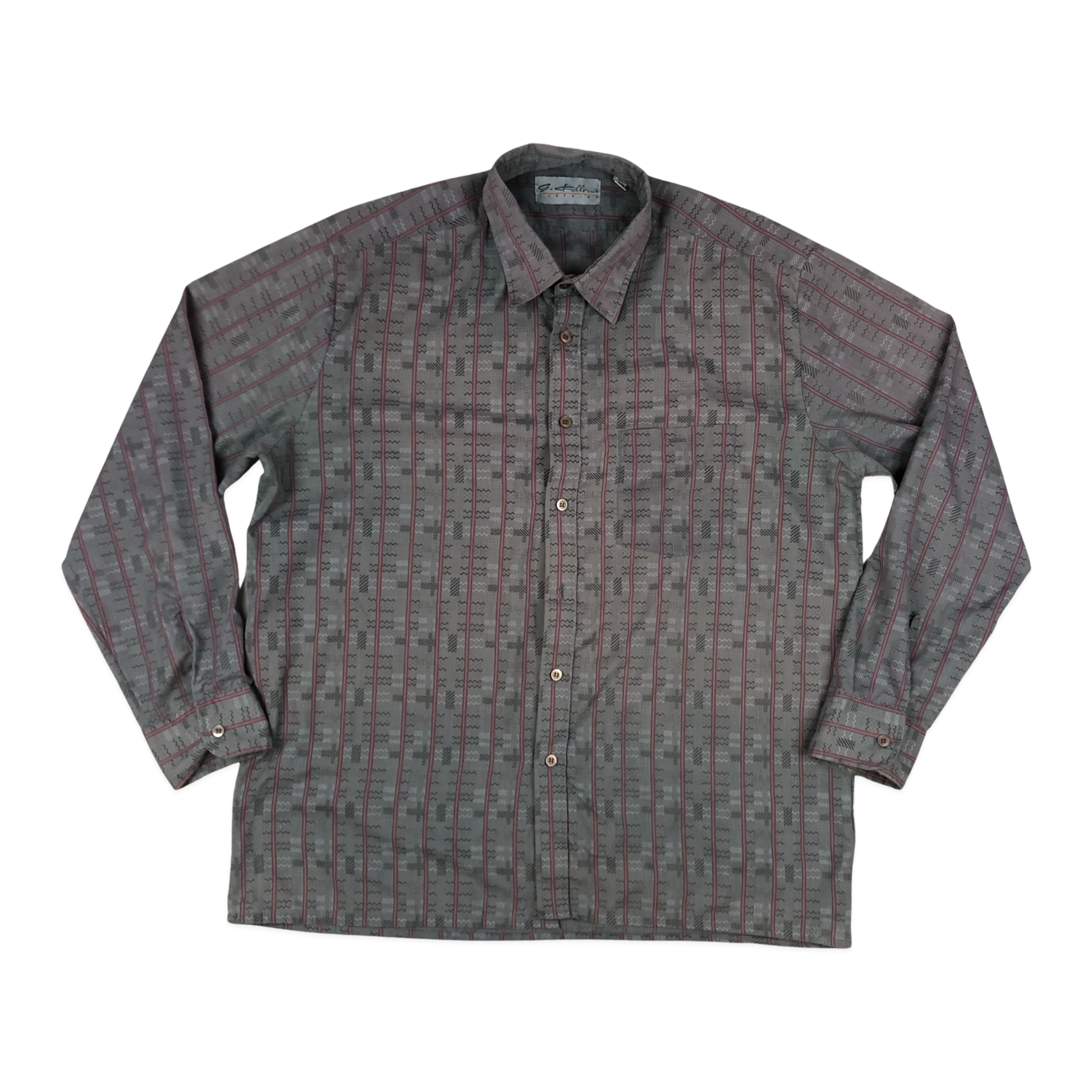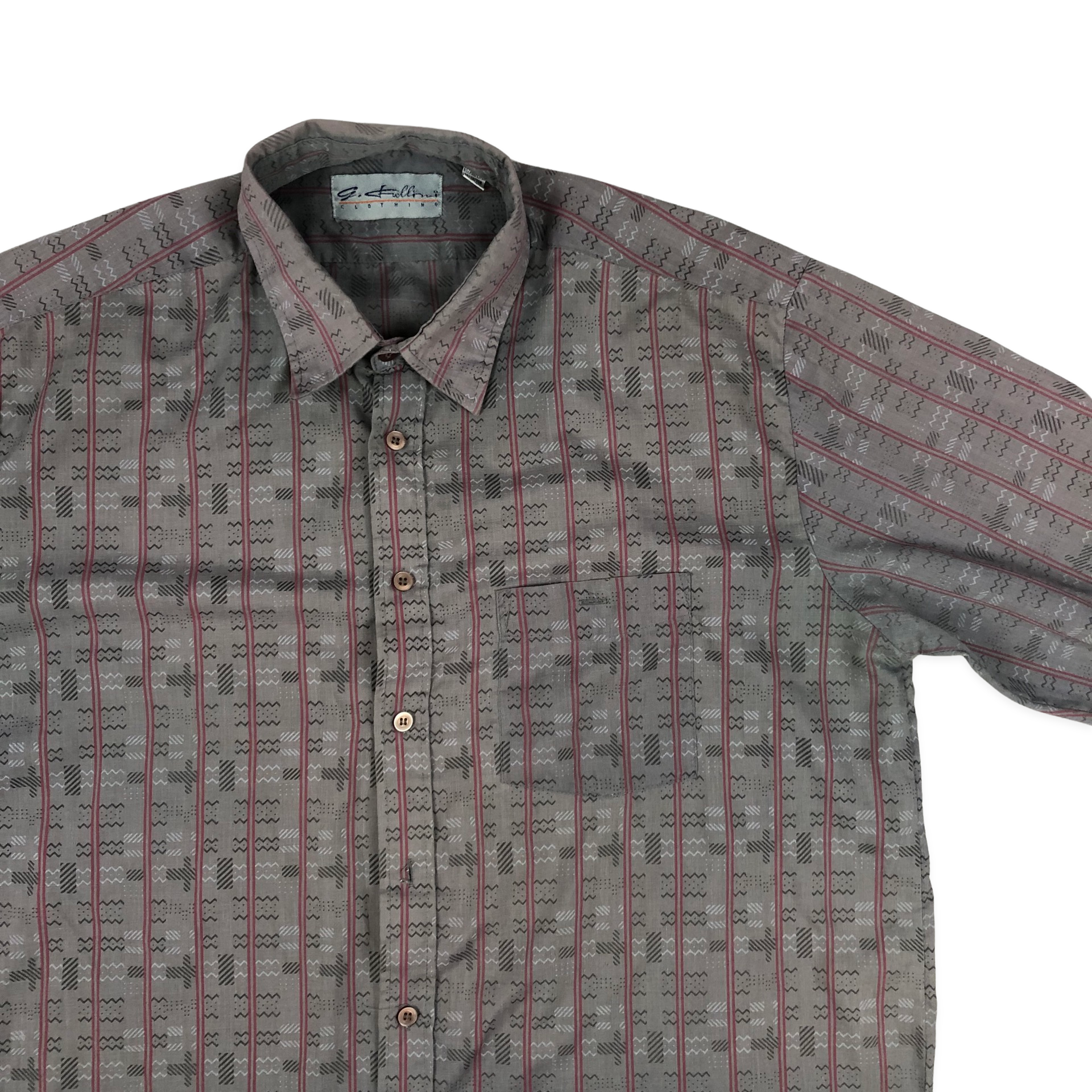 Vintage 80s 90s abstract pattern lightweight long-sleeve pocket shirt.