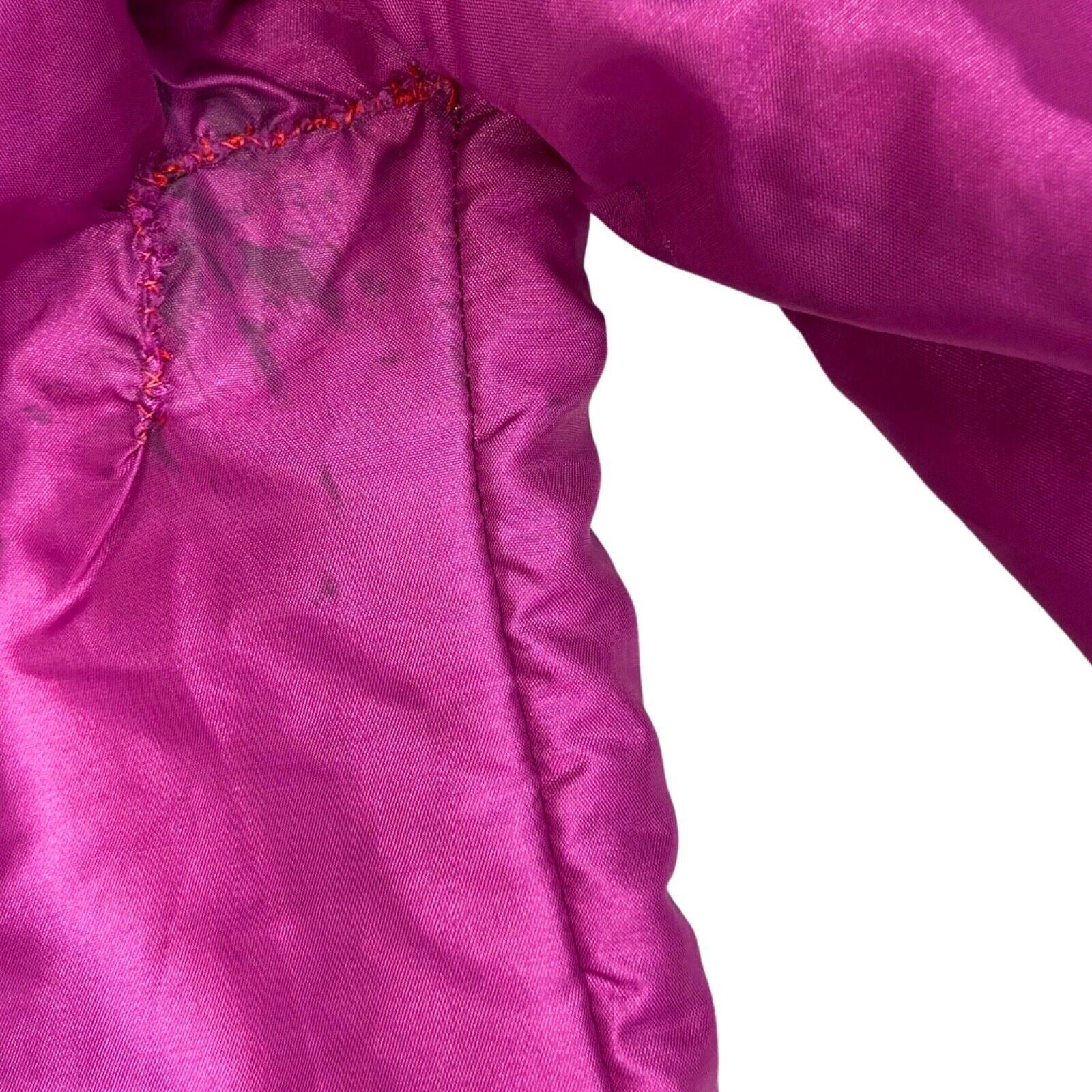 This is a gorgeous vintage 80s Ellesse ski suit made from a silky soft, padded, purple polyester blend fabric with no stretch and a matching interior lining.