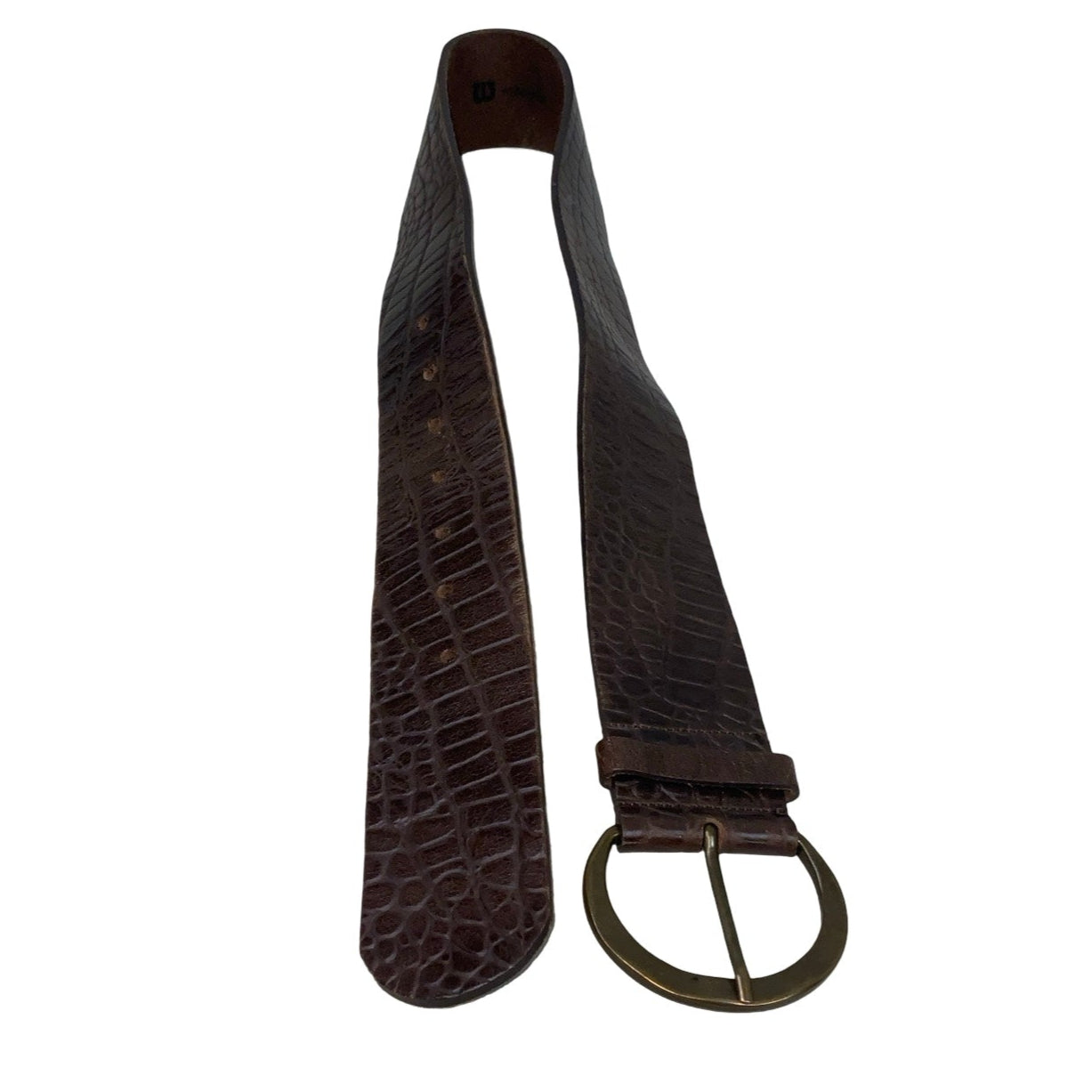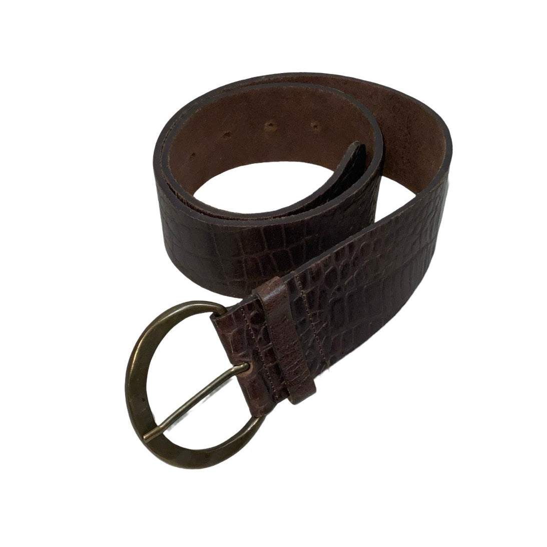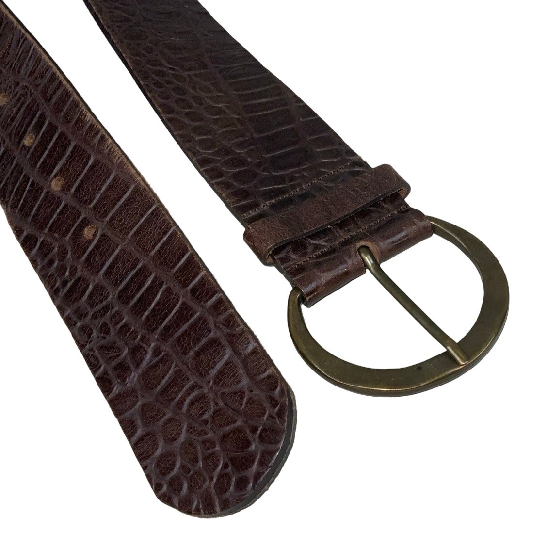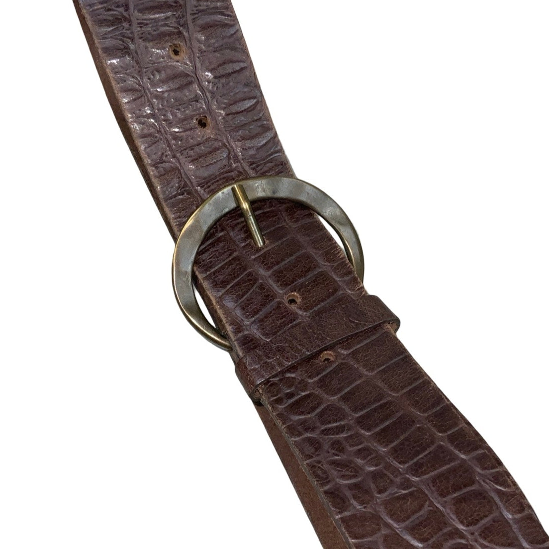 Vintage 80s 90s ‘Weinmann’ Brown Suede Croc Leather Buckle Belt