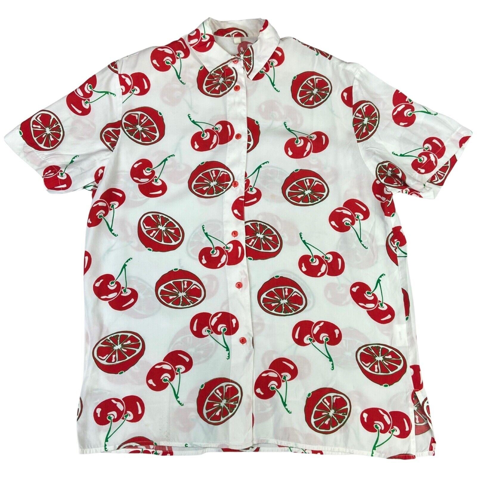 Vintage 80s 90s White Red Cherry Graphic Novelty Print Shirt Sleeve Shirt L