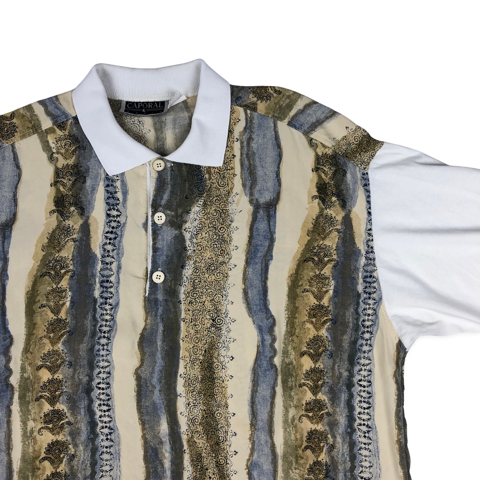 Vintage 80s Abstract Print Stripy Polo Shirt L-XXL