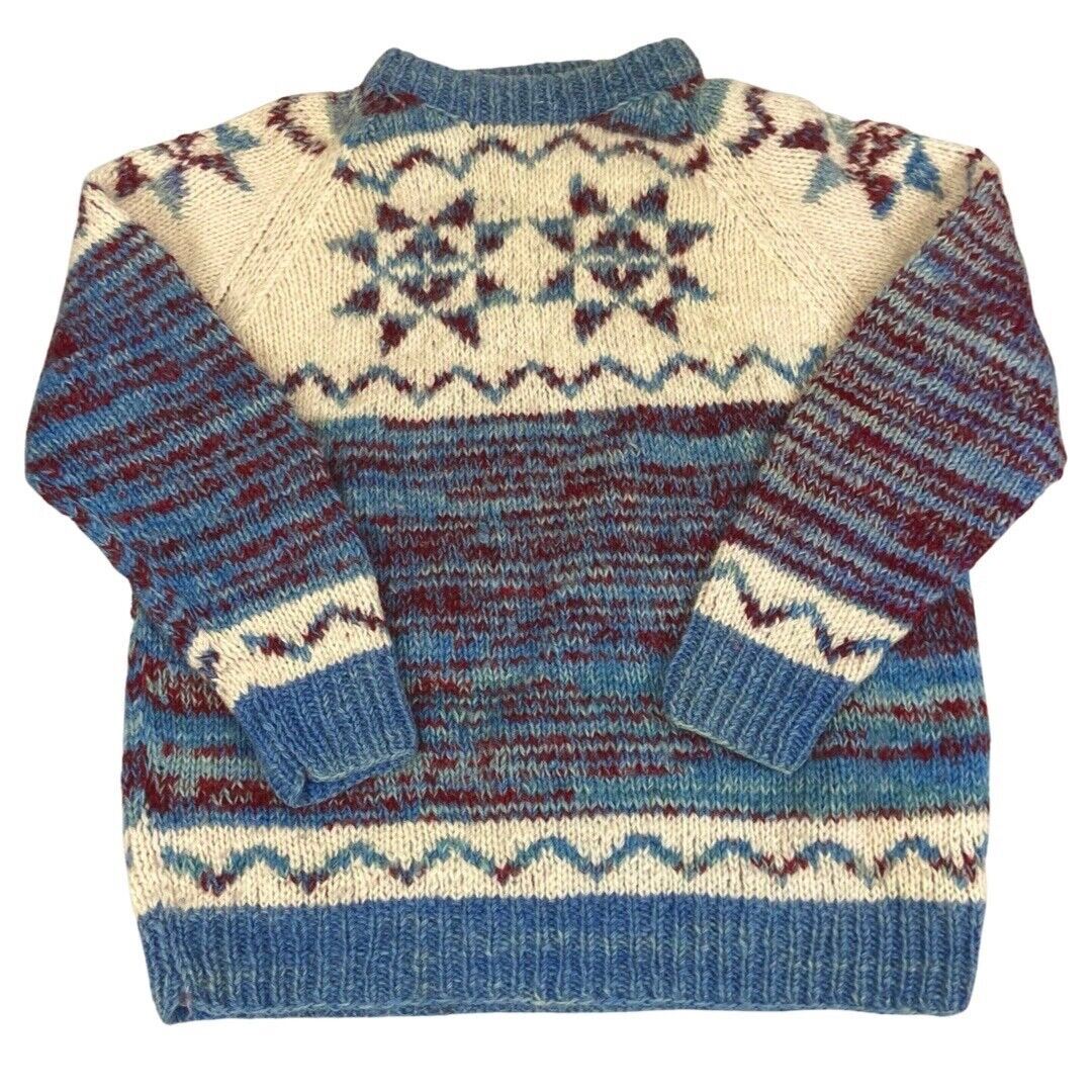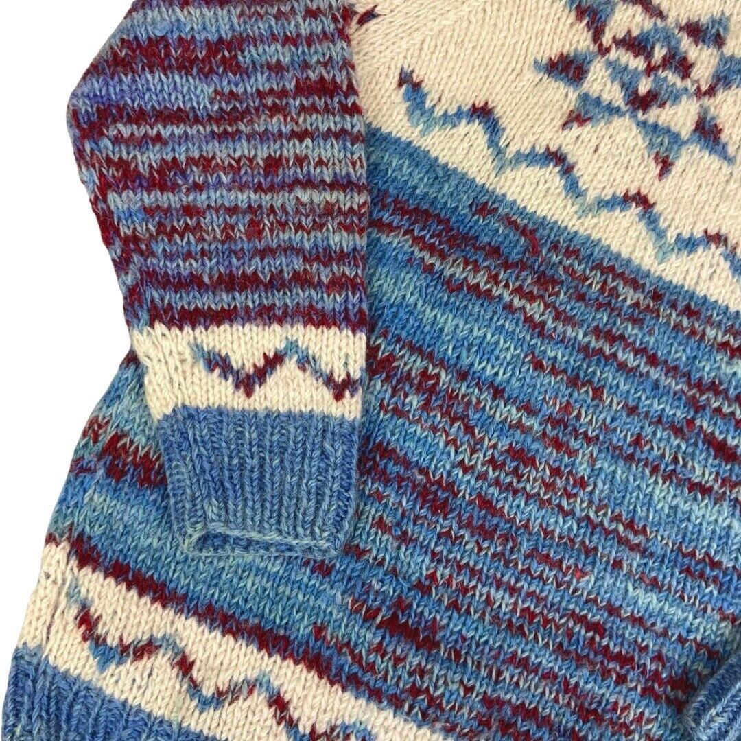 Vintage 80s Blue Cream Scandinavian Knit Sweater Jumper 16 18 L