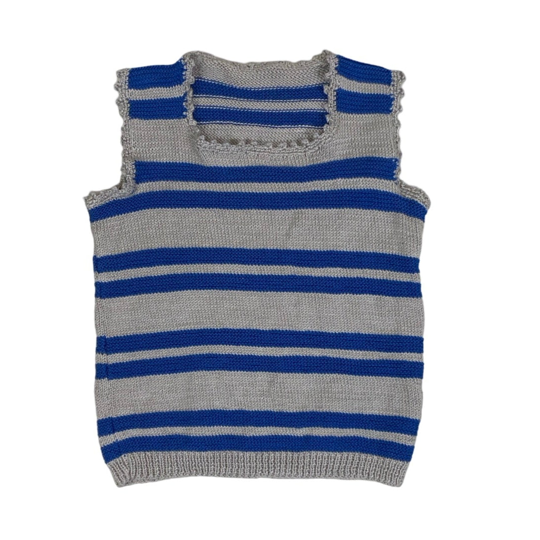 Vintage 80s Blue Grey Striped Knitted Cropped Vest 8 10