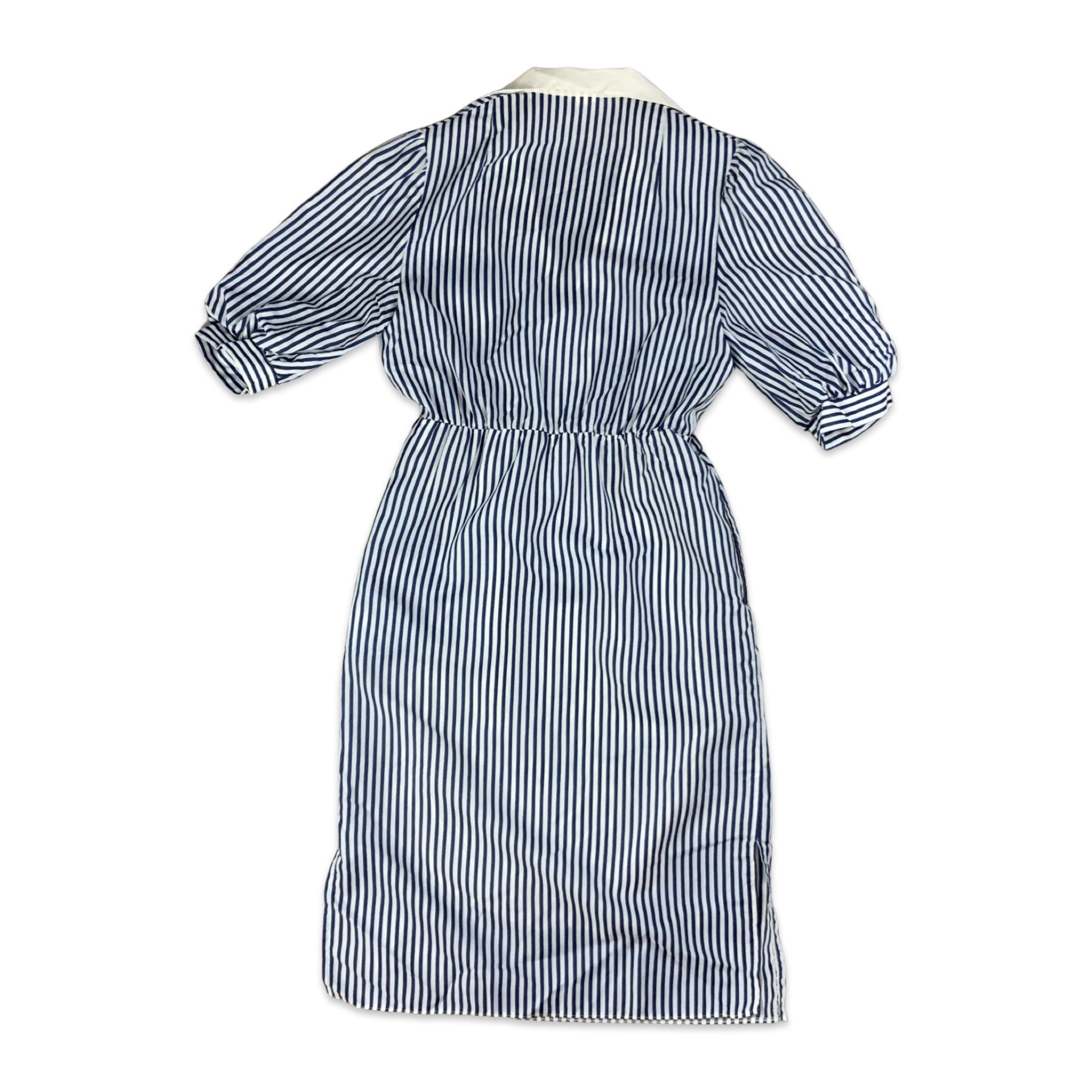 Vintage 80s Blue & White Striped Collared Midi Dress 10 12