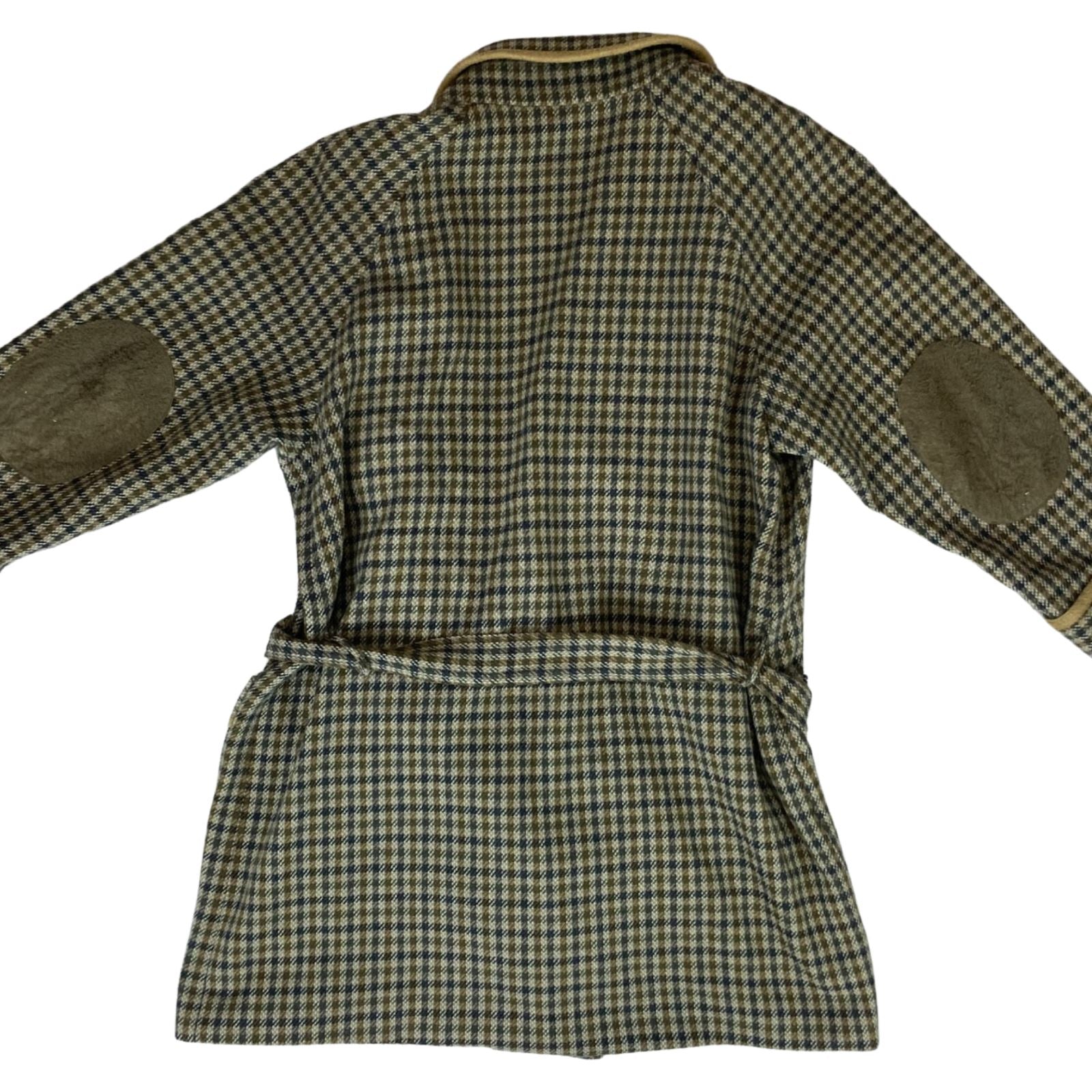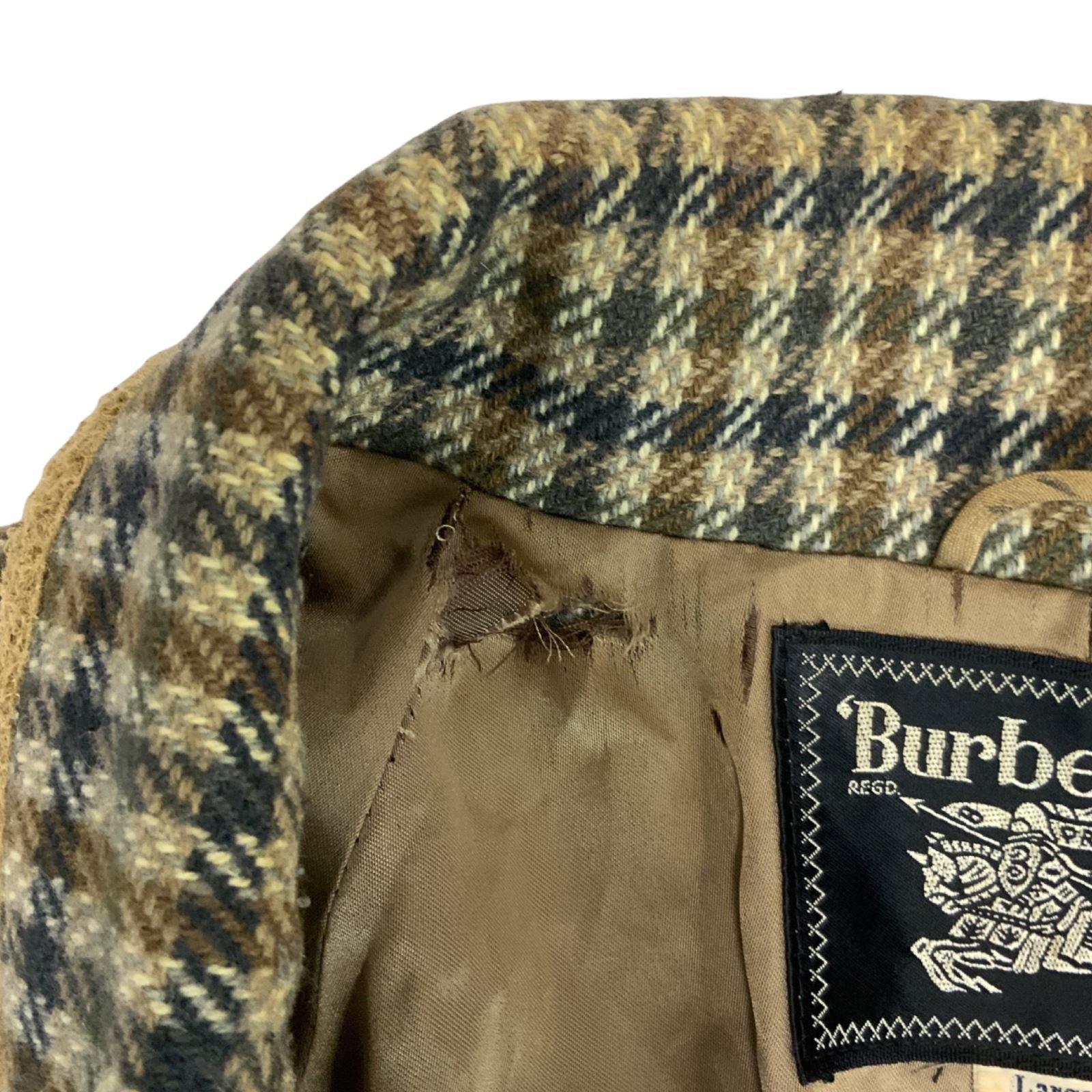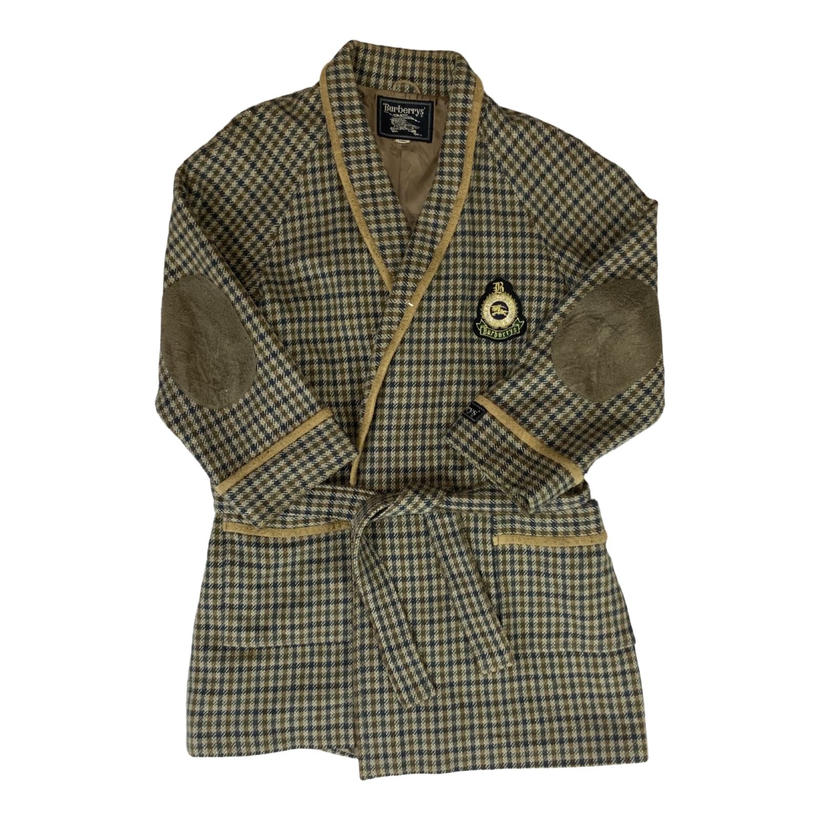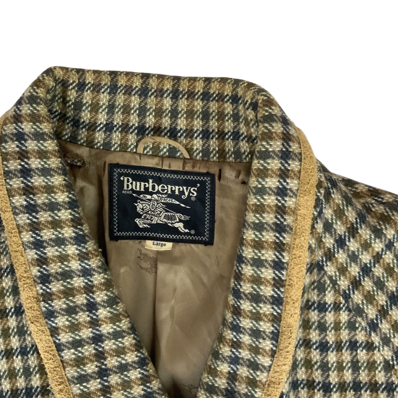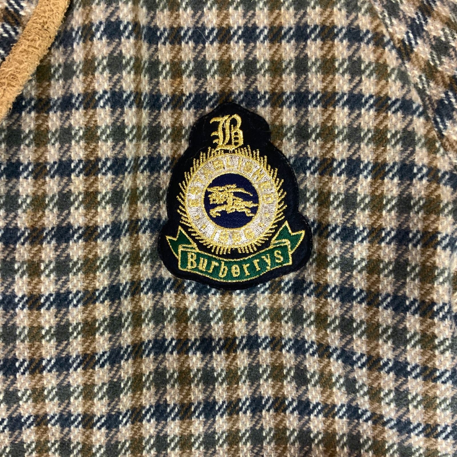 Vintage 80s Brown Cream Green Burberrys Wool Embroidered Checked Coat L