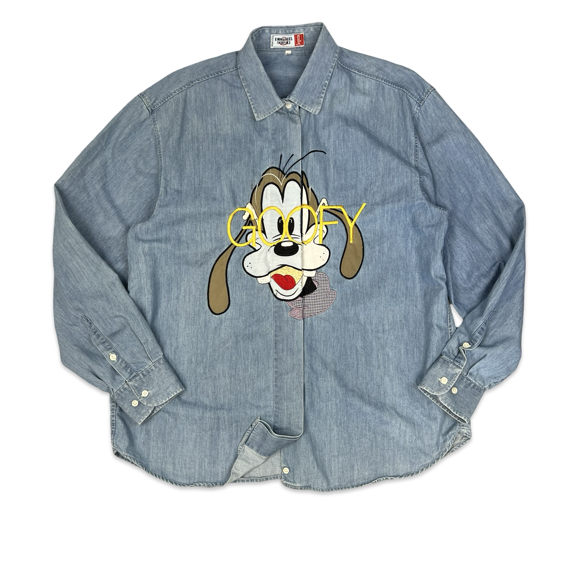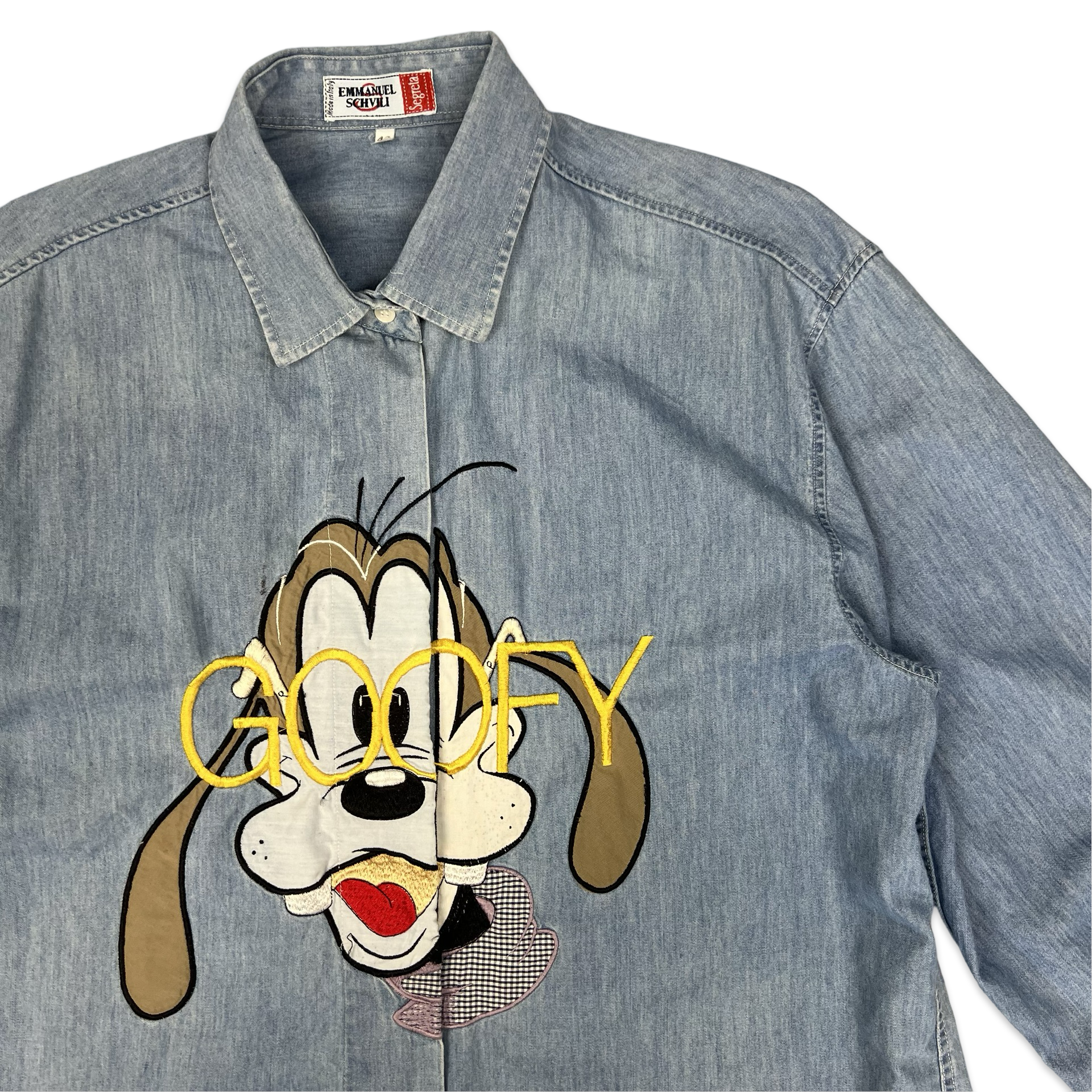 Vintage 80s Emmanuel Schvili Disney "Goofy" Embroidered Denim Shirt RARE 18