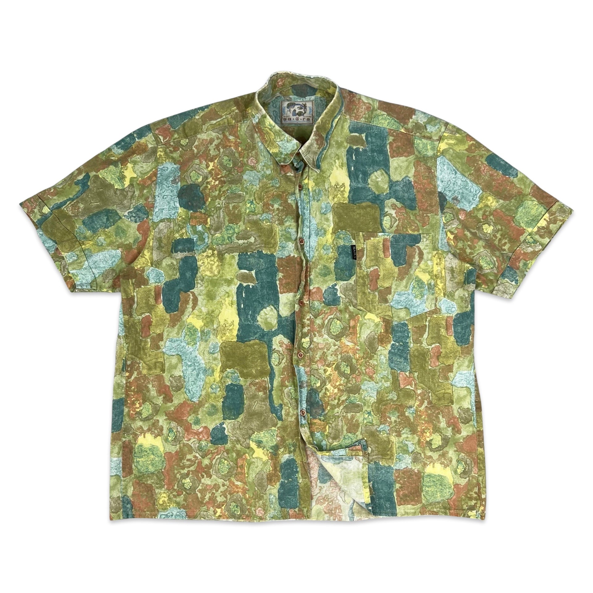 Vintage 80s Green Teal & Brown Abstract Print Shirt L XL