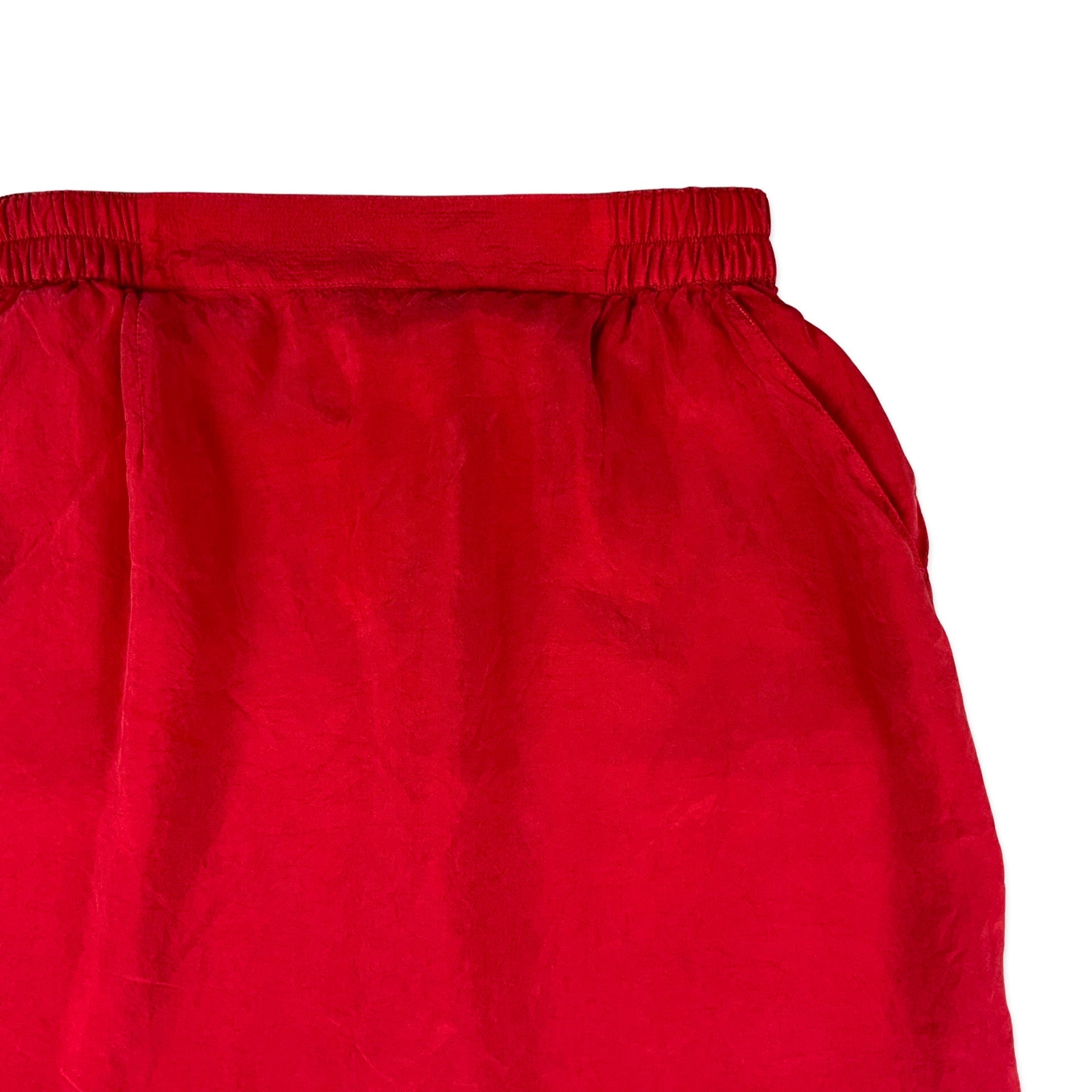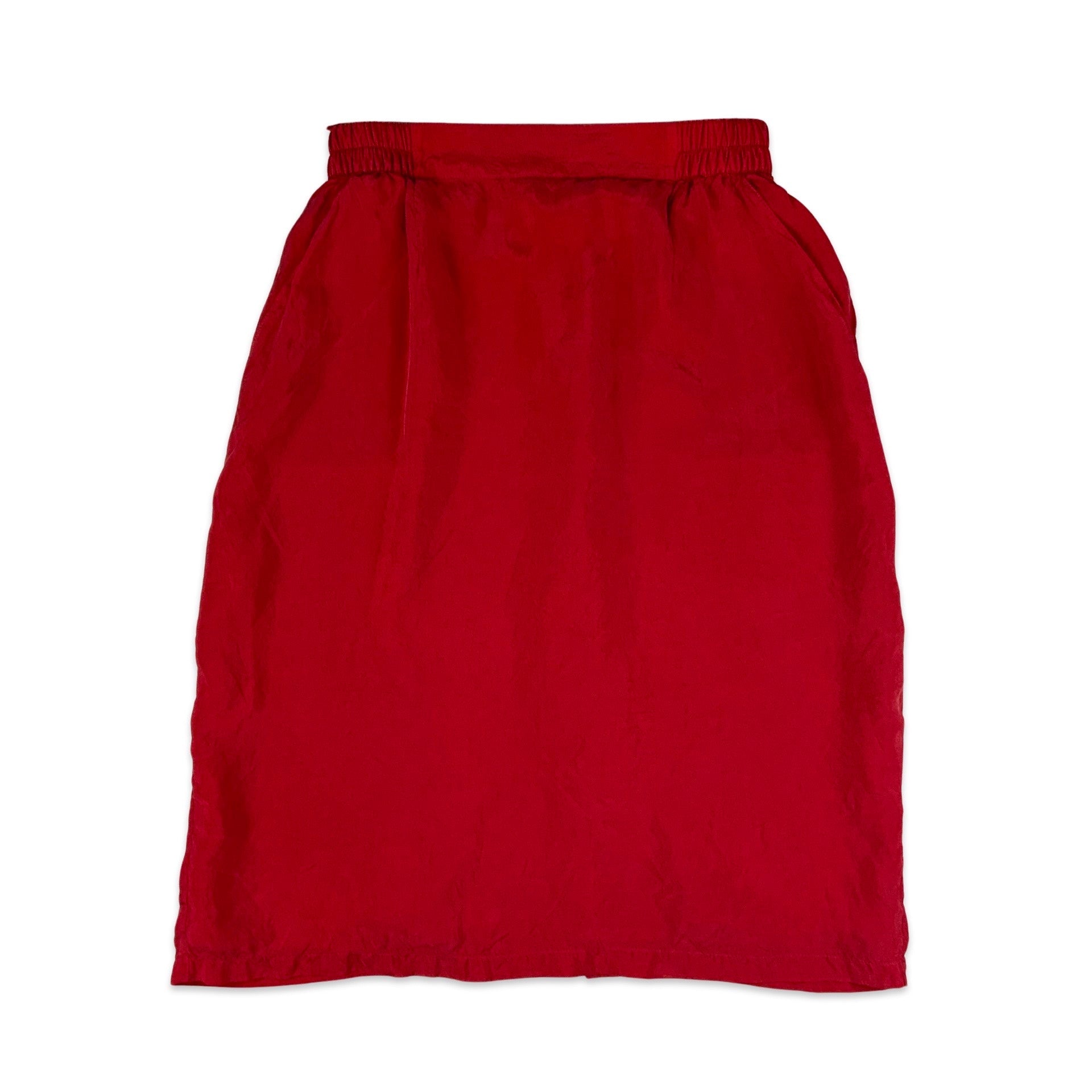 Vintage 80s 100% viscose skirt with elasticated waistband and side pockets, small back slit and zip fastening.