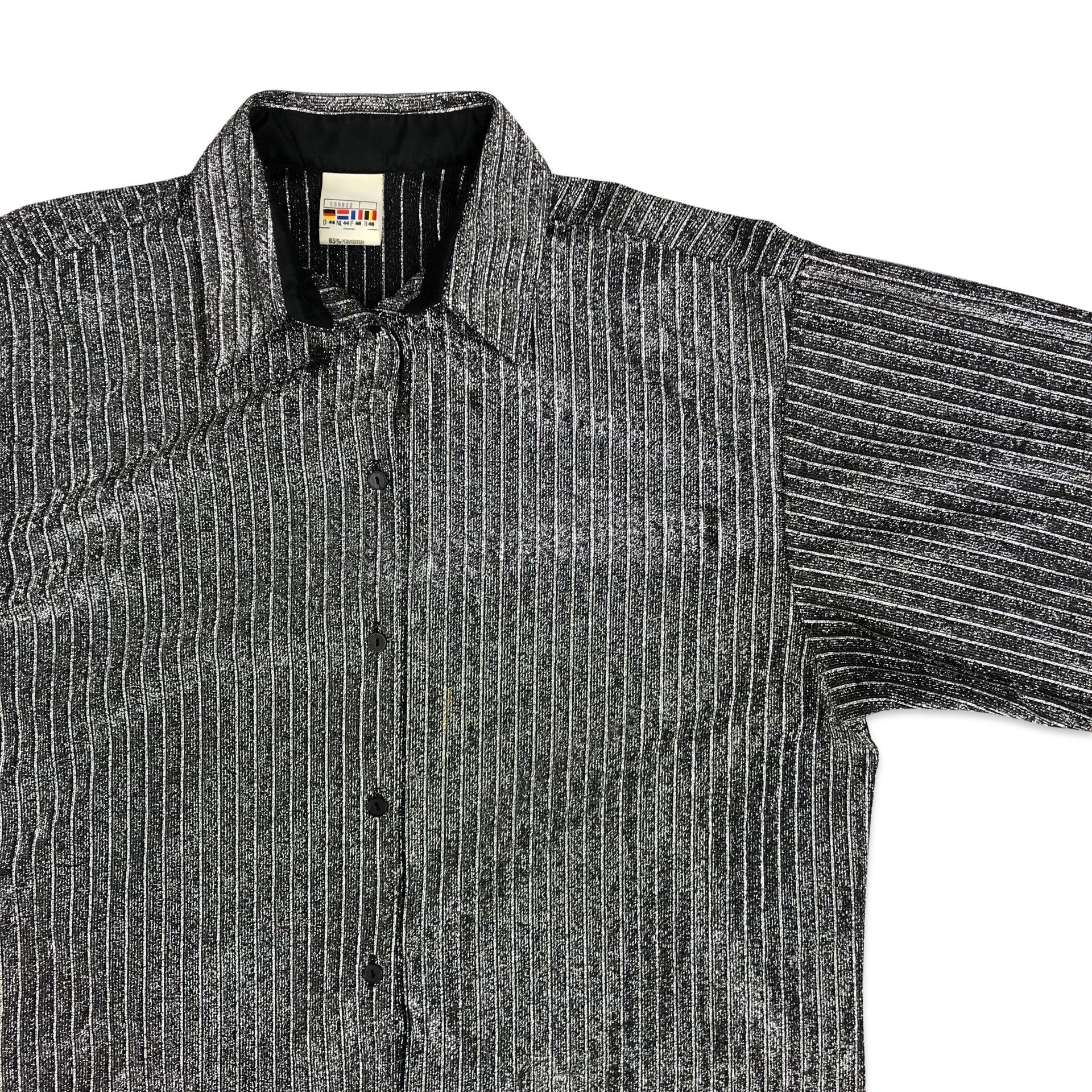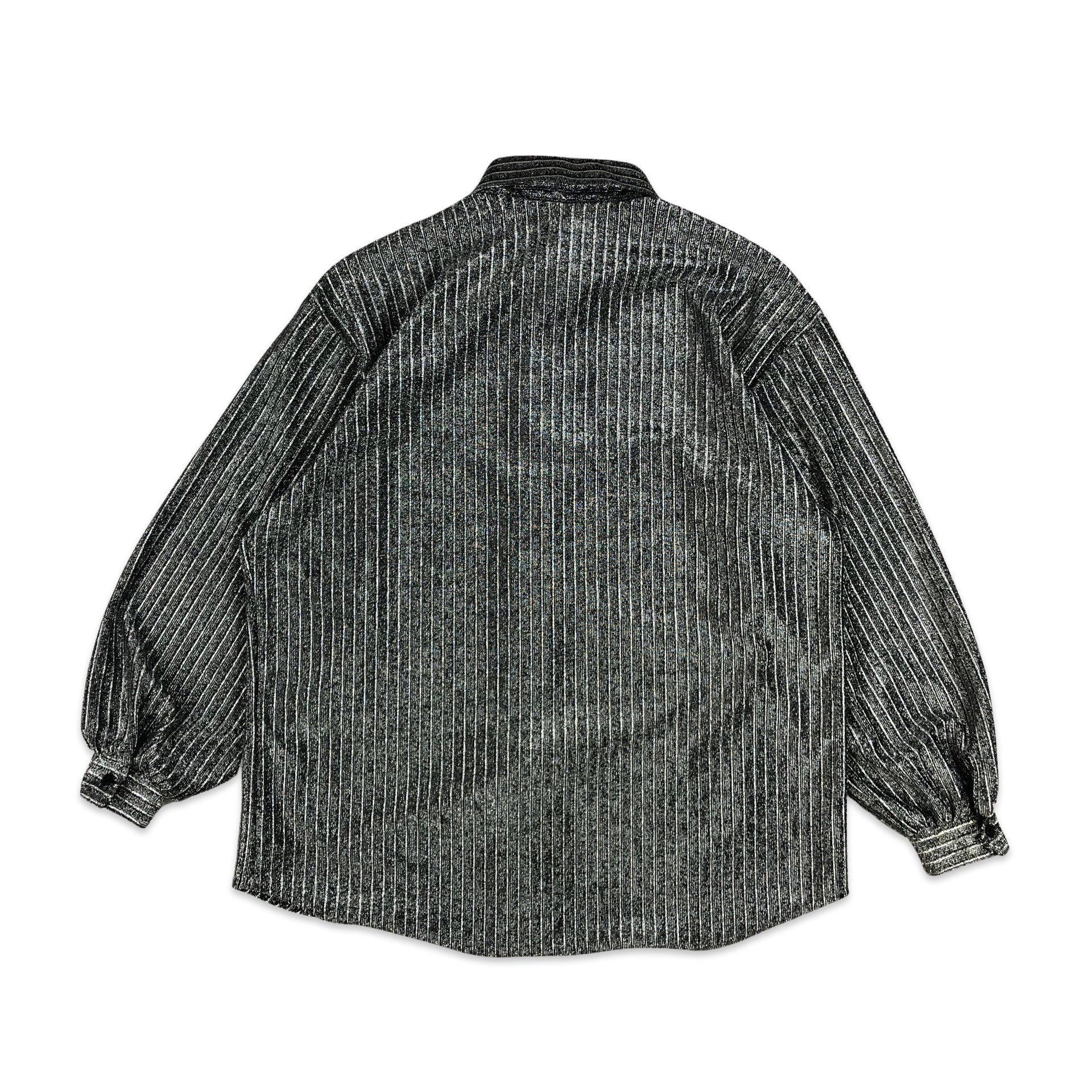 Vintage 80s silver lurex women's striped shirt.