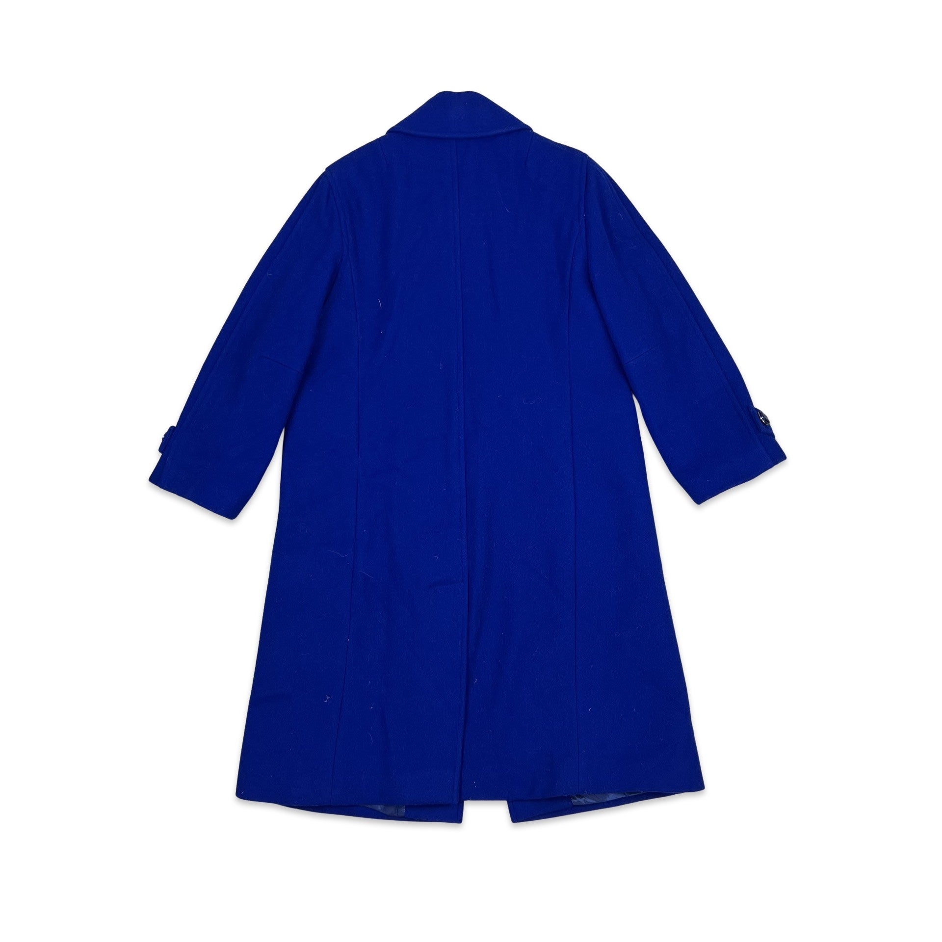 Vintage 80s Wool Longline Duster Coat Blue 12 14 16