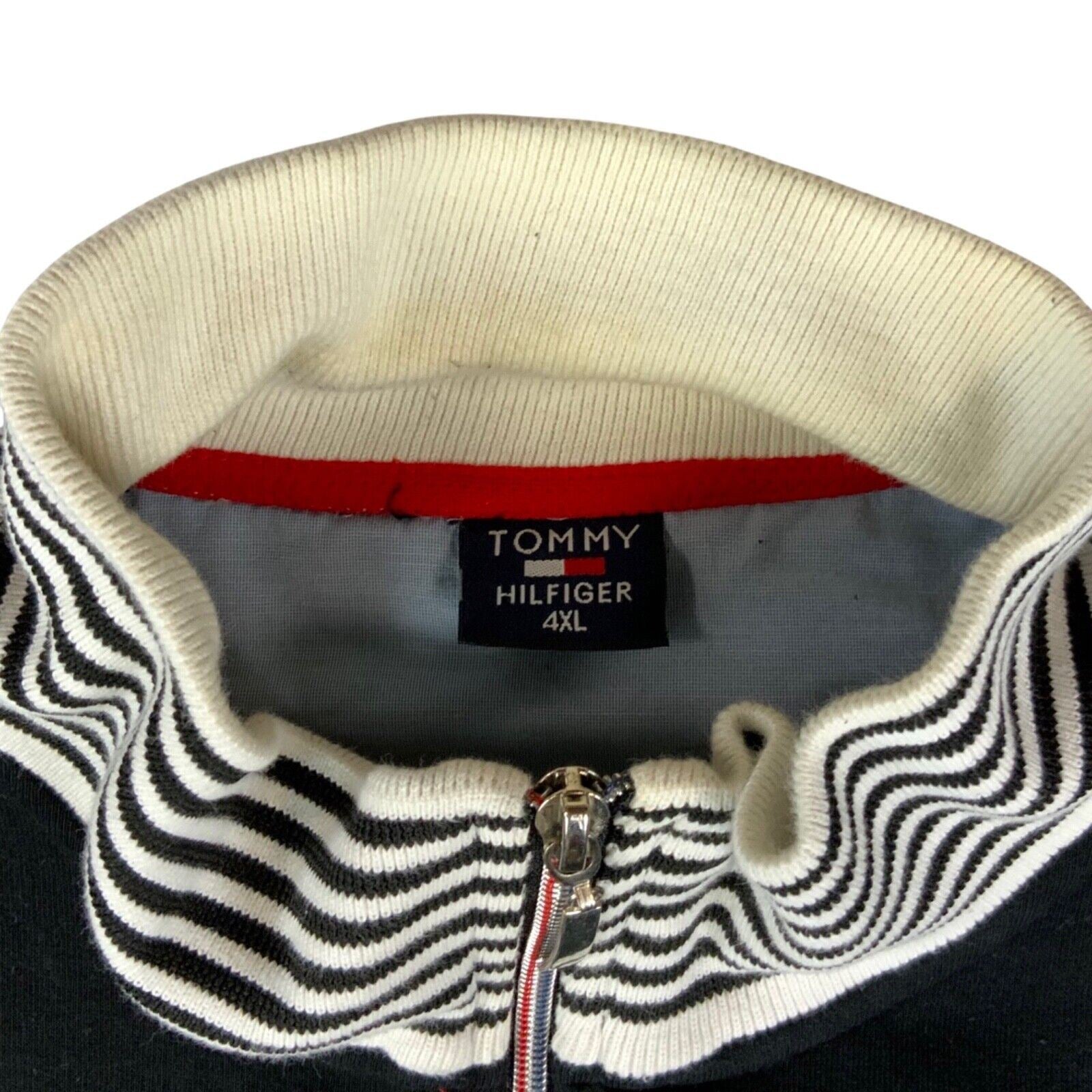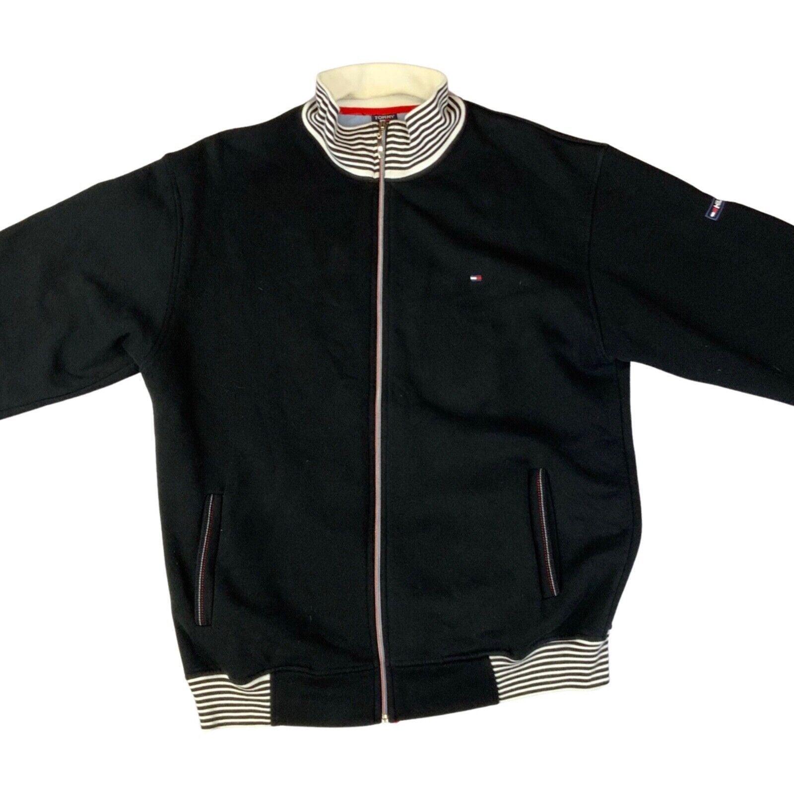 Vintage 90s 00s Black White Stripped Tommy Hilfiger Zip Up Sweater Jumper