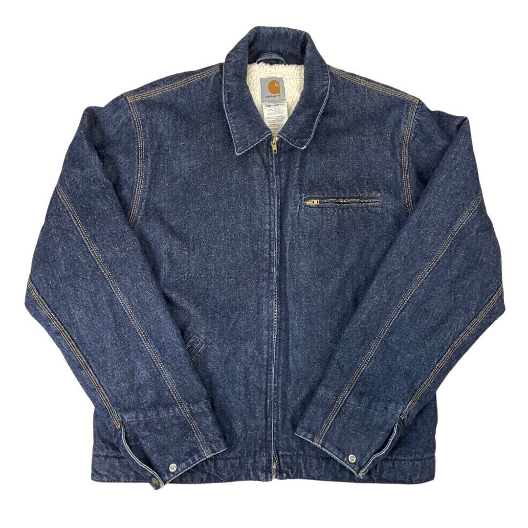Vintage 90s 00s Blue Carhartt Sherpa Lined Zip-Up Denim Jacket M