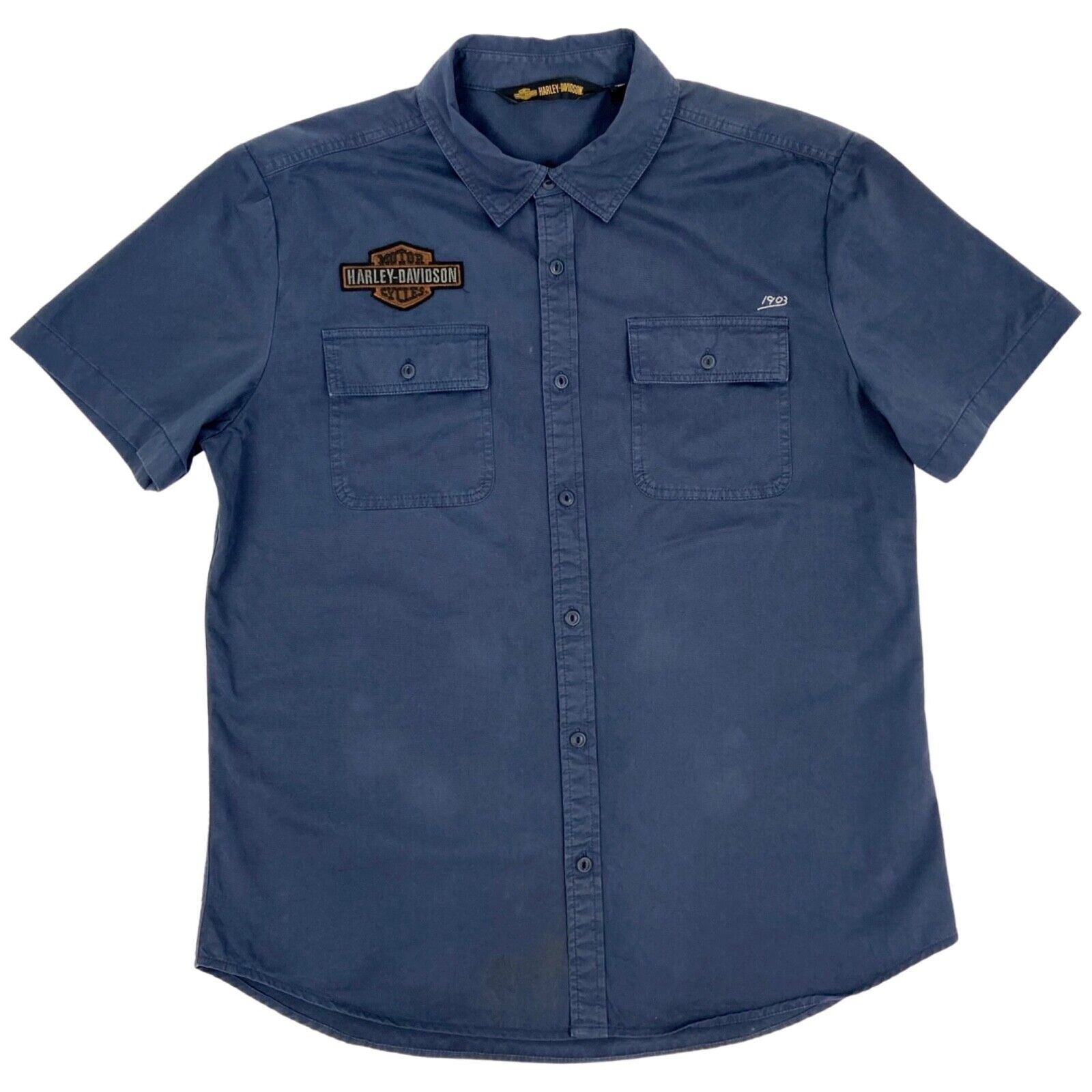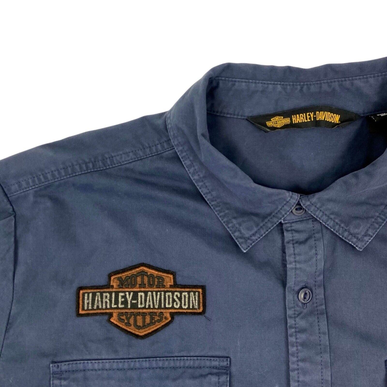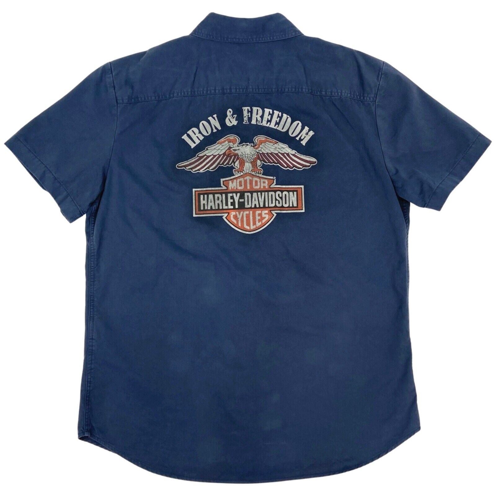 Vintage 90s 00s Blue Harley Davidson Button Down Graphic Print Shirt L XL