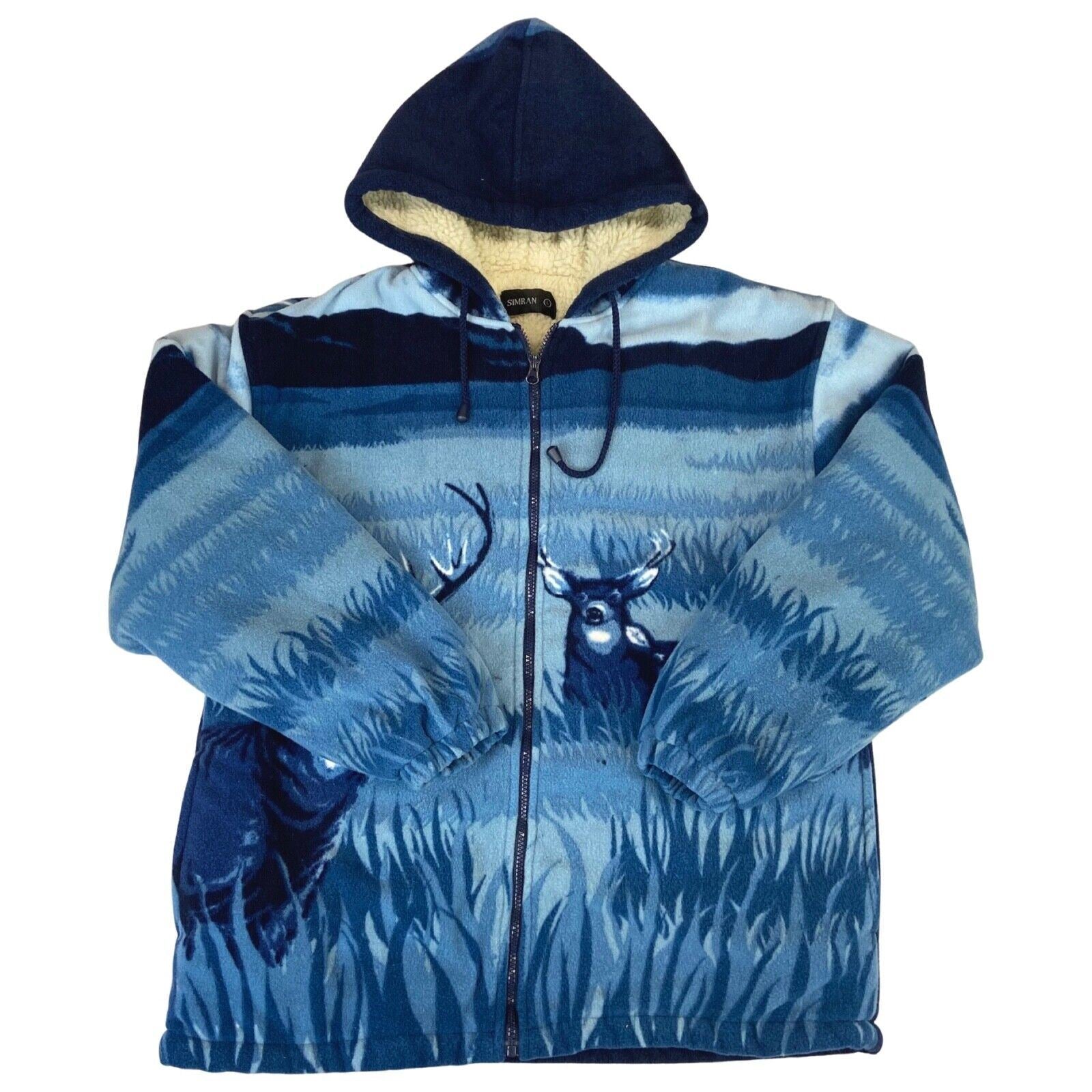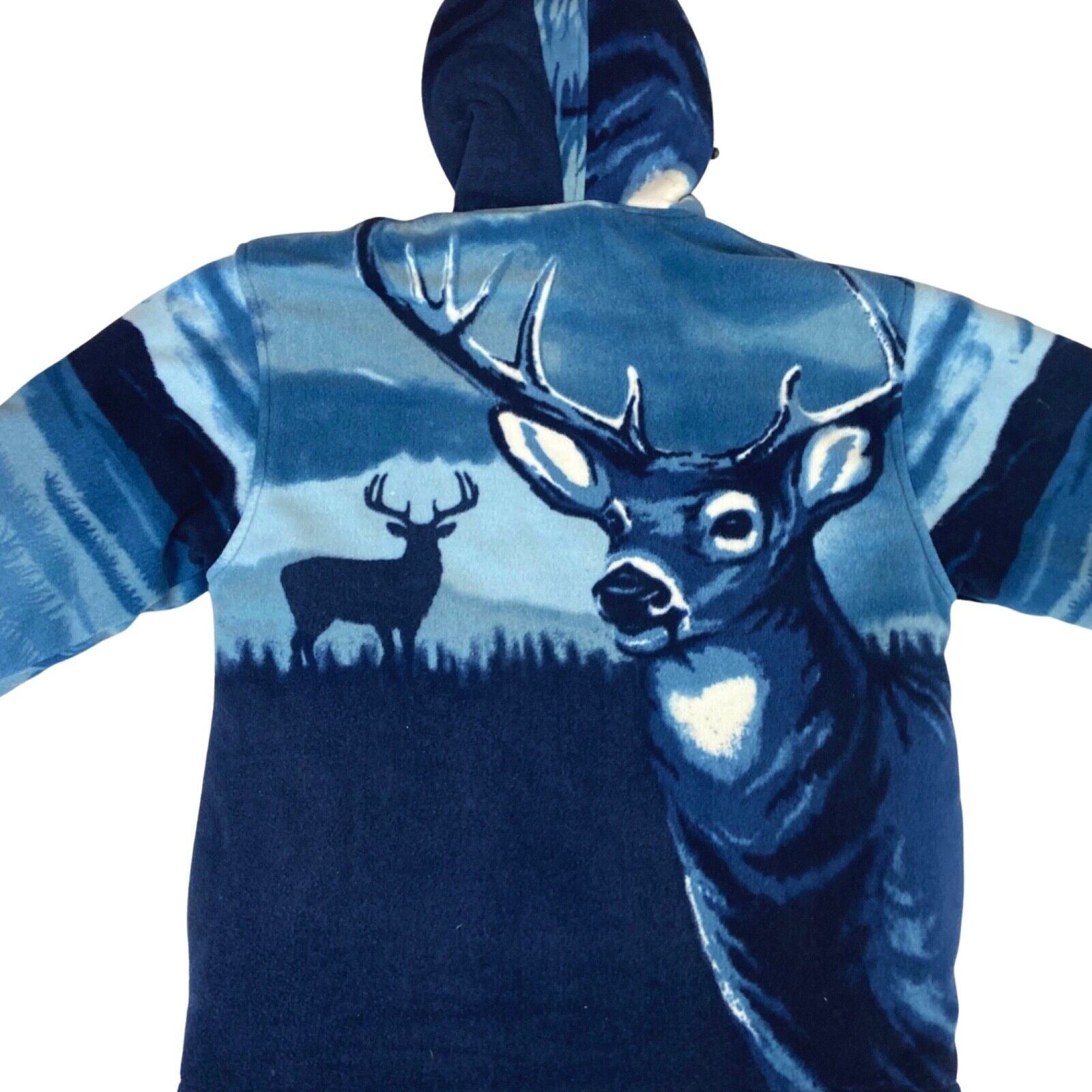 Vintage 90s 00s Blue Sherpa Lined Deer Graphic Print Fleece Jacket L